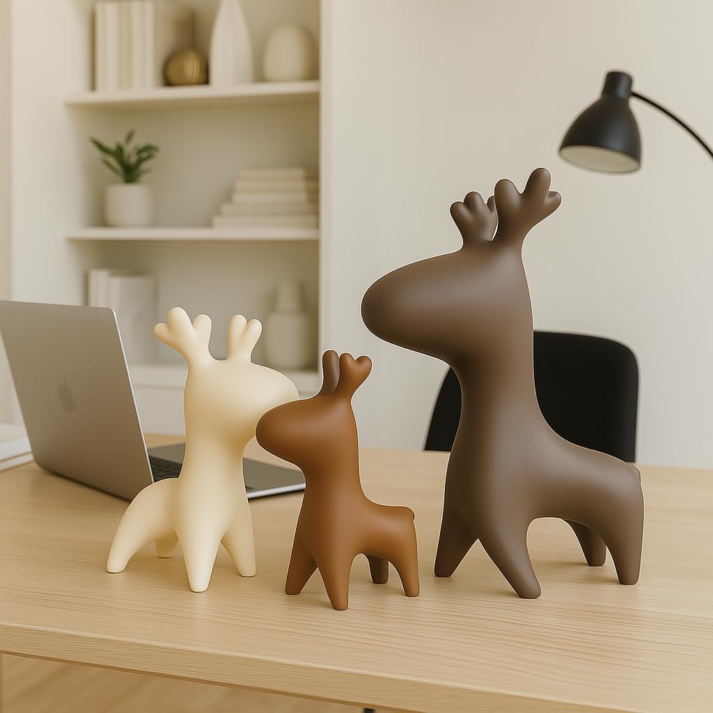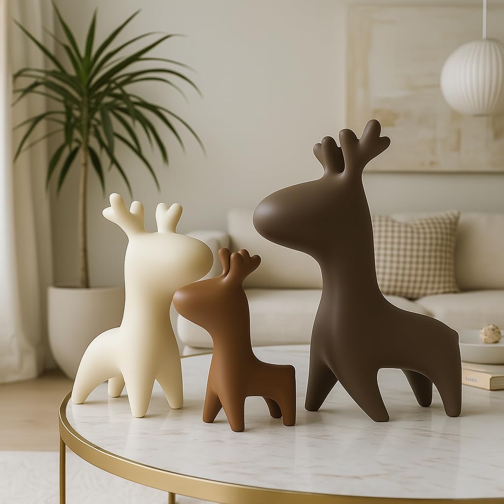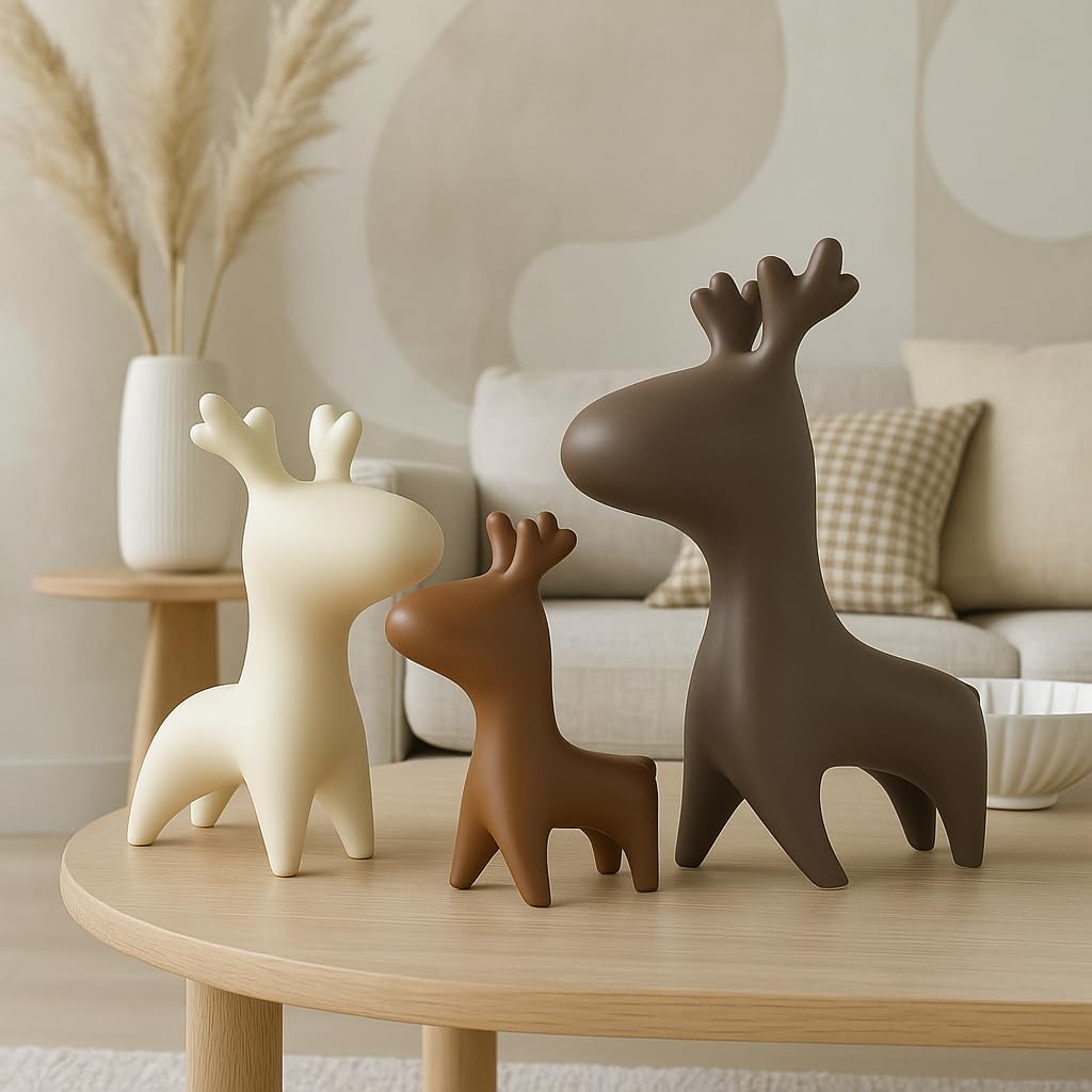 Home Decor Elk Family Matte Finish Ceramic Figurines – (Set of 3, Matte)