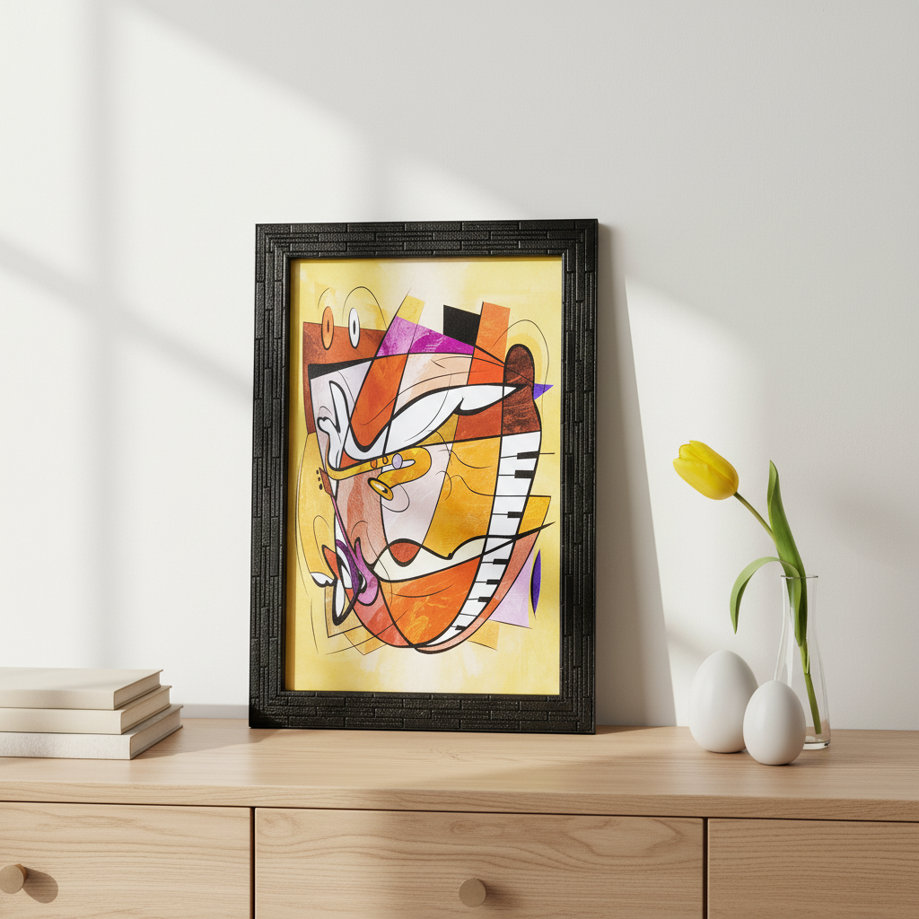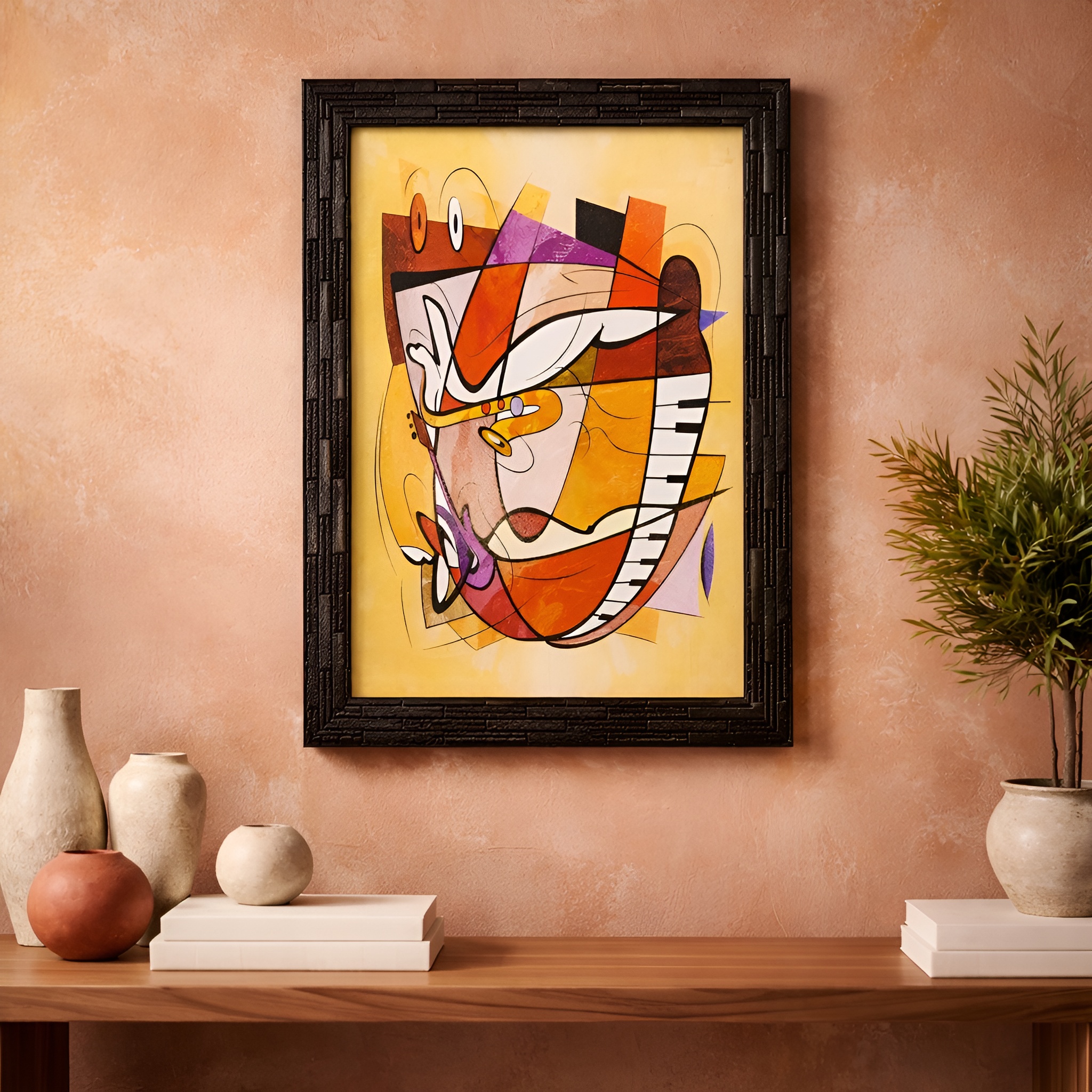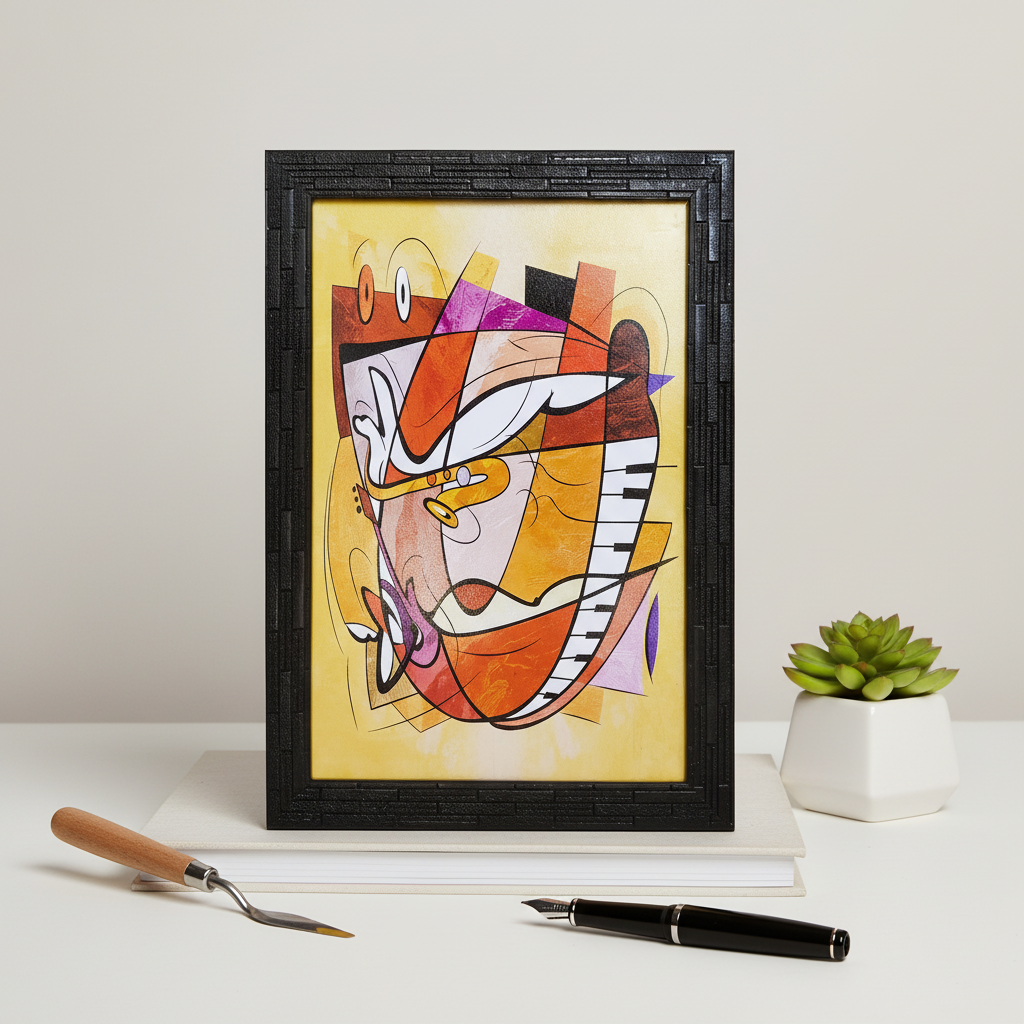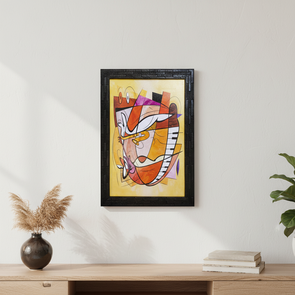 LIFEHAXTORE® Abstract Modern Art Framed Painting | Ready to Hang- (Wooden Frame, Multicolor, 10inch x 14 inch)