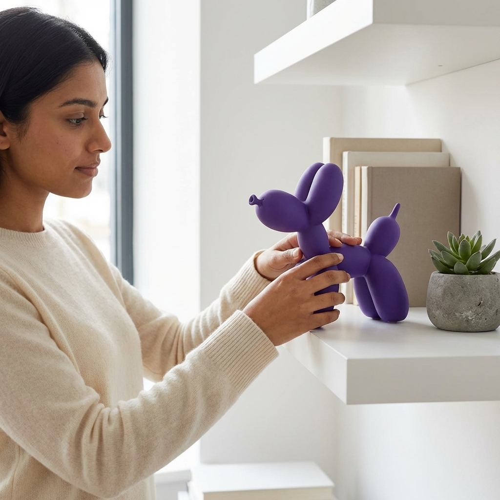1. This balloon dog statue makes a striking addition to any room. Place this statue on your office desk or shelf for a unique accent that really pops.