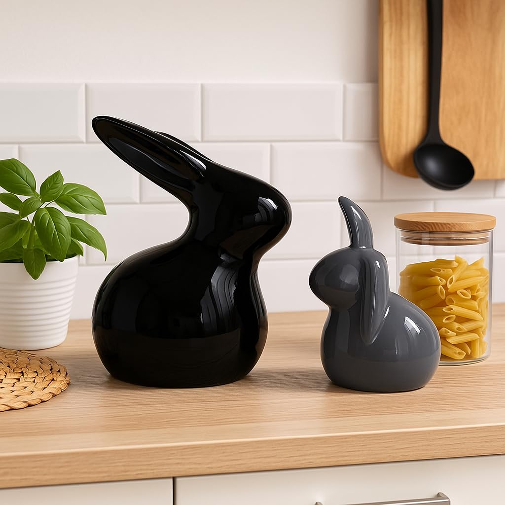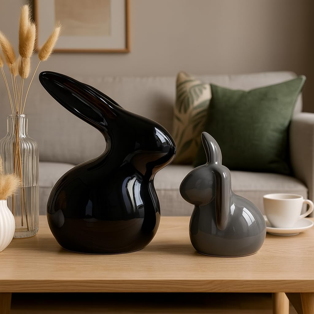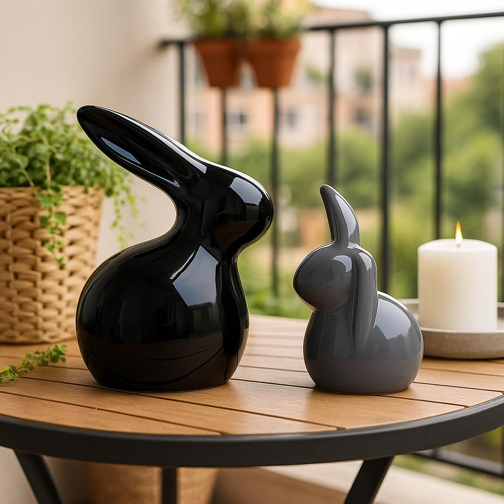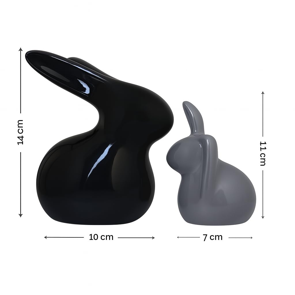 XTORE® Home Décor Ceramic Rabbit Figurines (Set of 2 , Black and Grey)