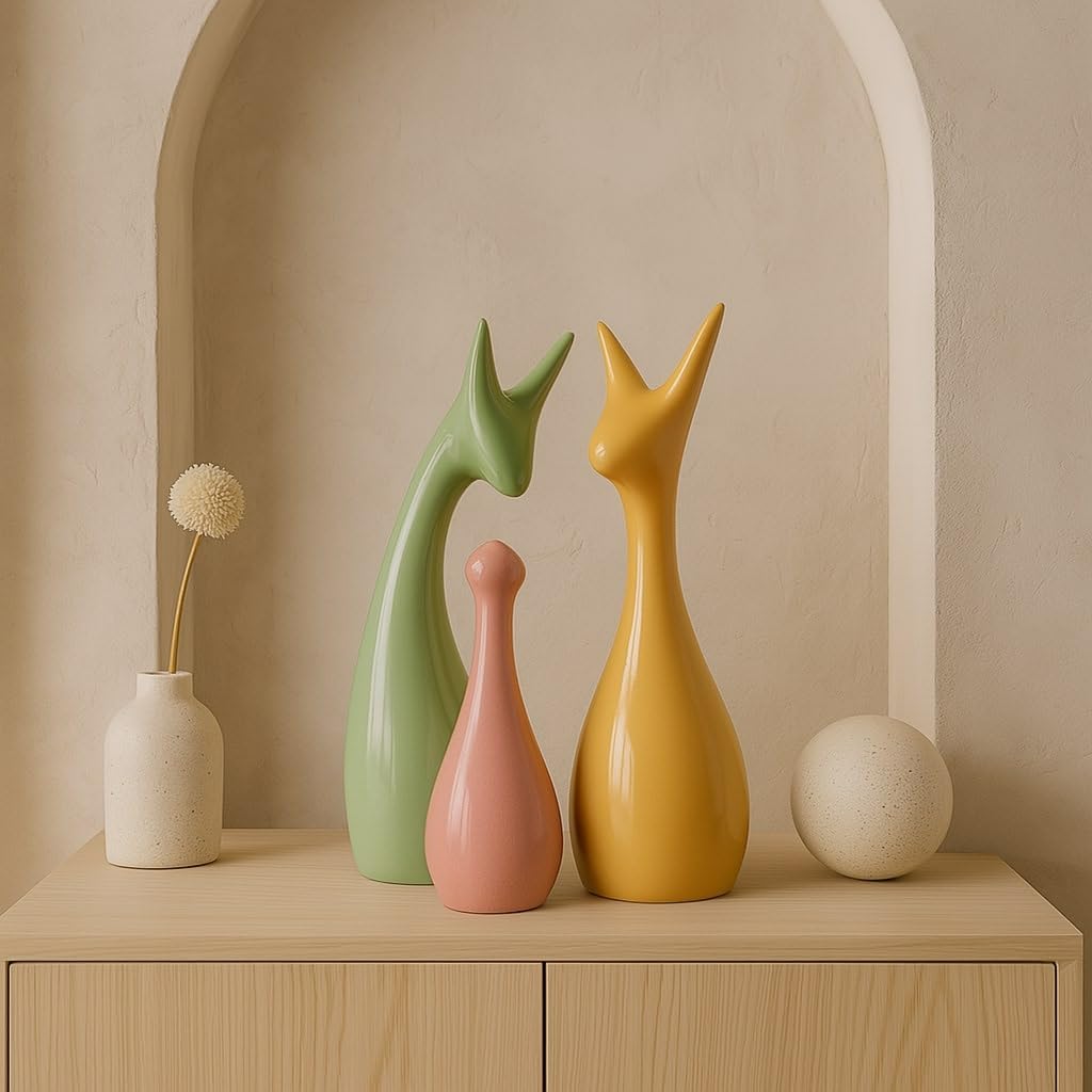 1. Set of Lovely Deer Family – Hot Firing Ceramic statue for Home Decor