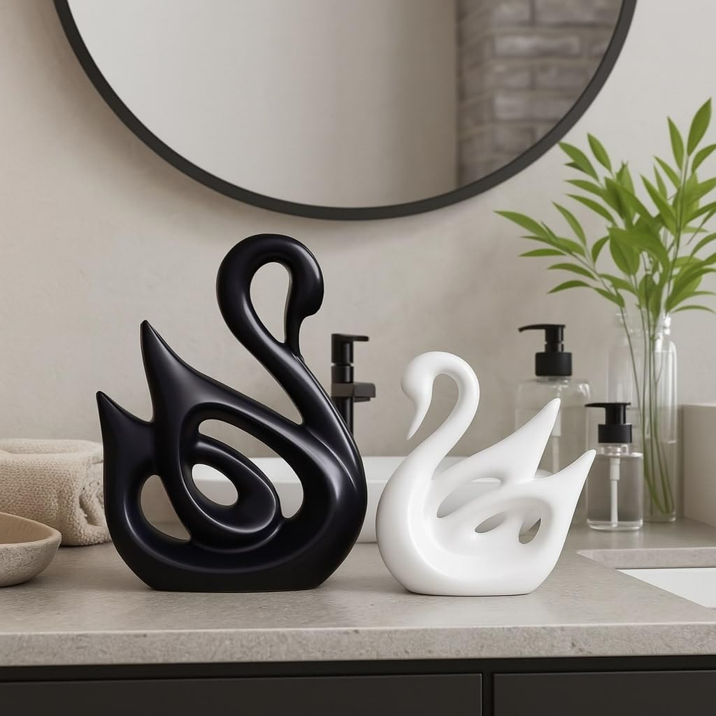92 reviews for LIFEHAXTORE® Home Décor Lucky Swan Couple | Pro Matte Finish Ceramic Figures (Set of 2 Pc, Large, White & Black)