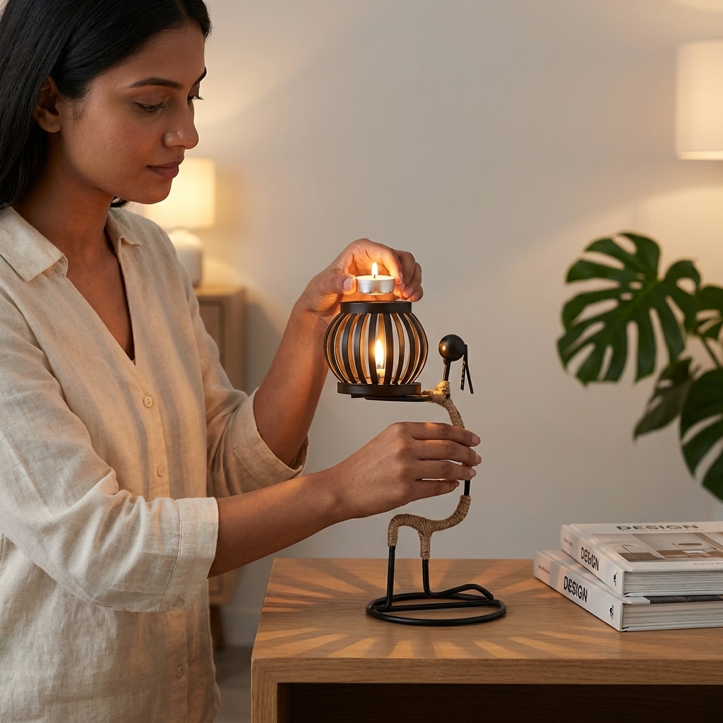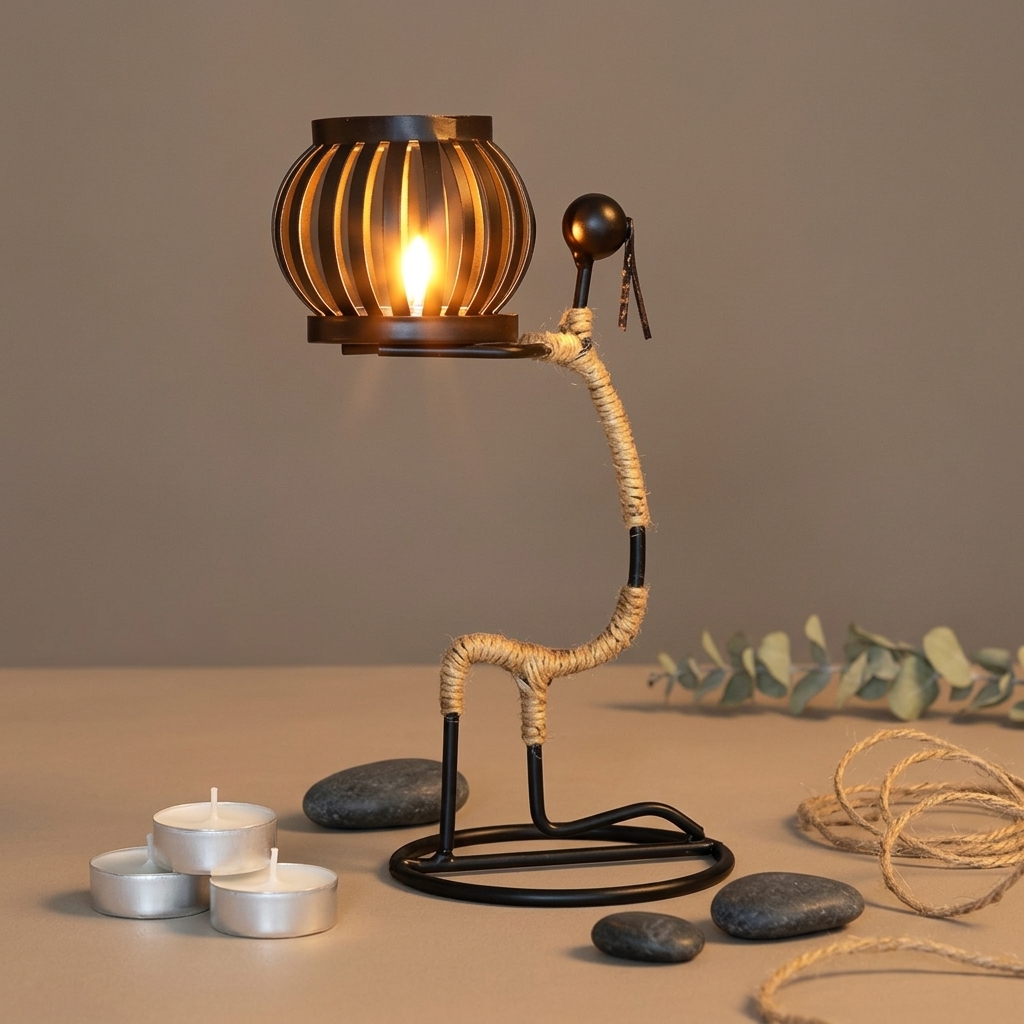 Iron Candle Holder | Handmade Figurines | Home Decor Accessories (Multicolor, Pack of 1)