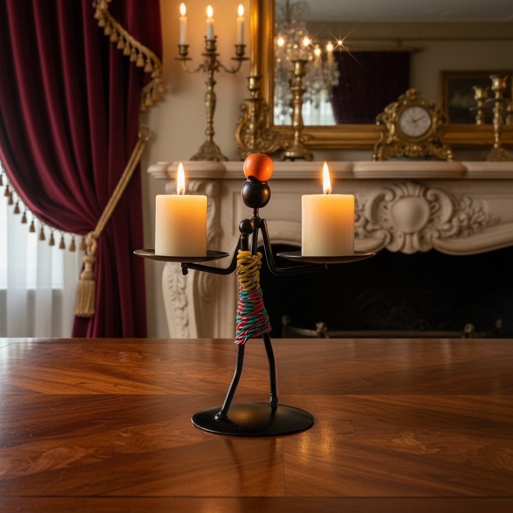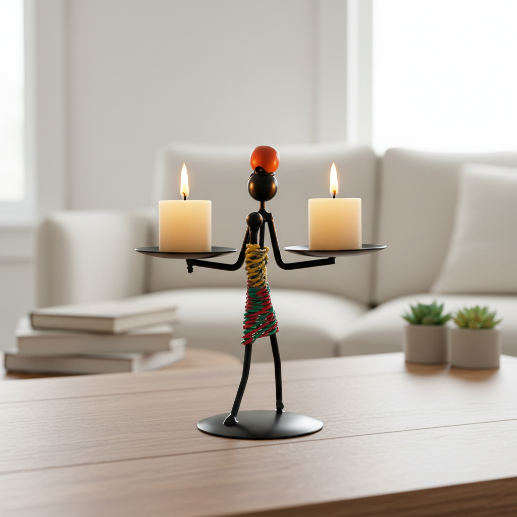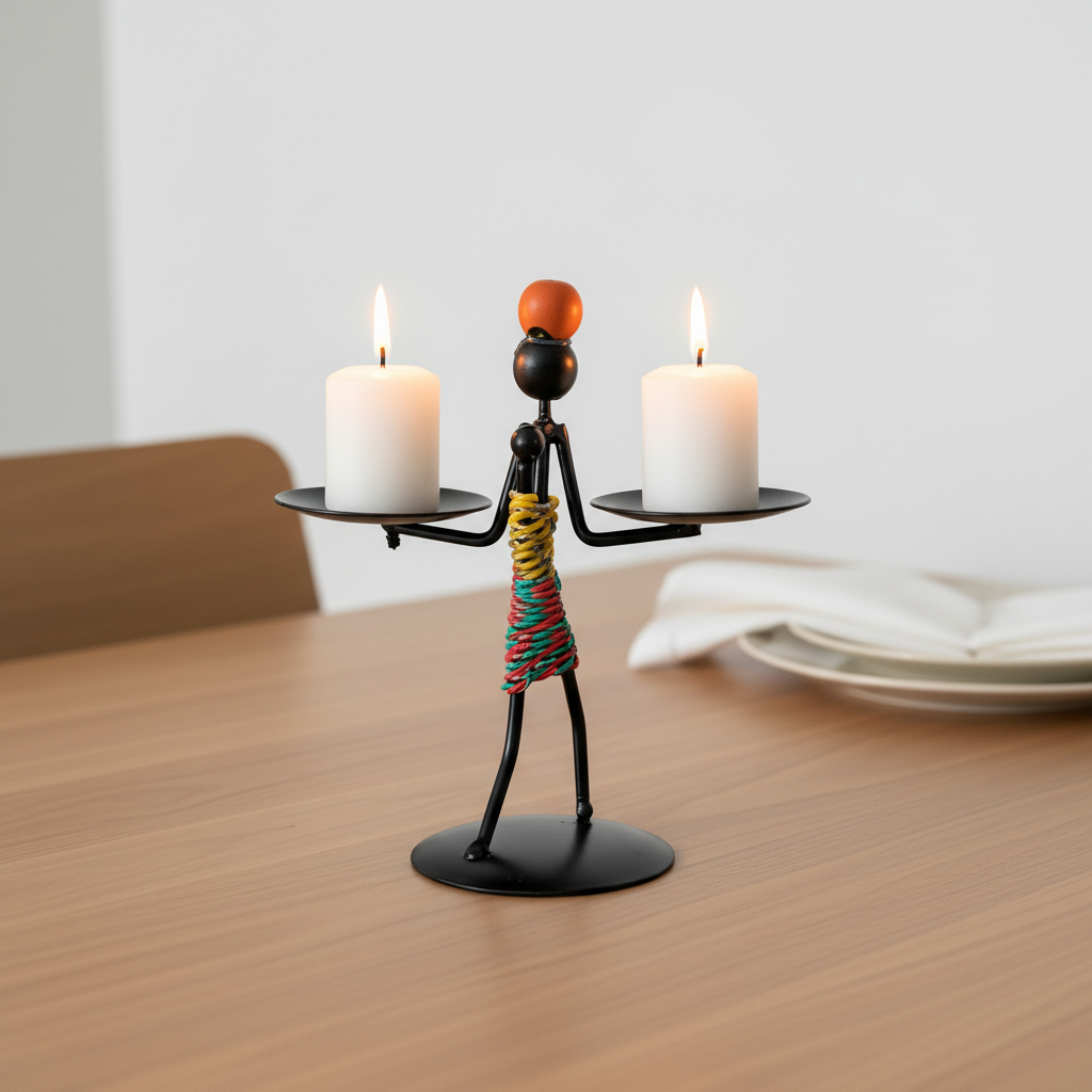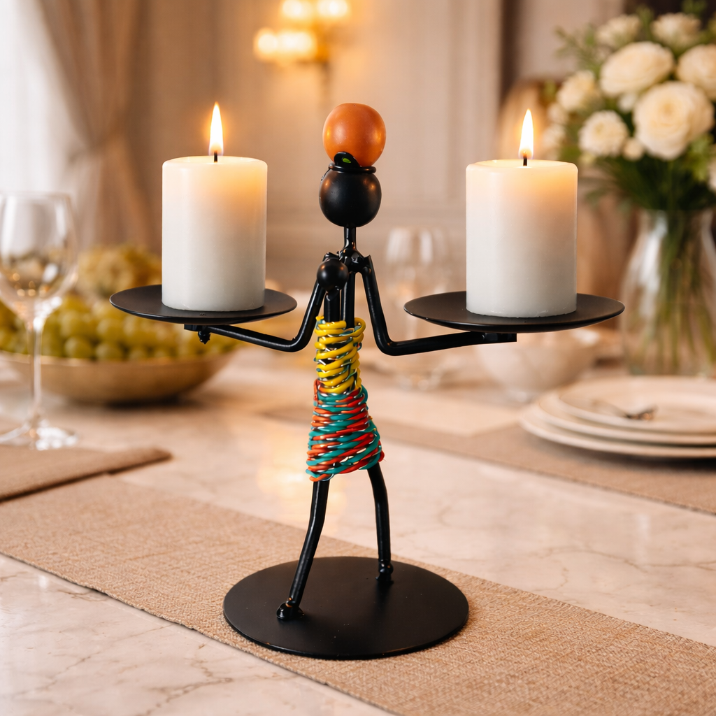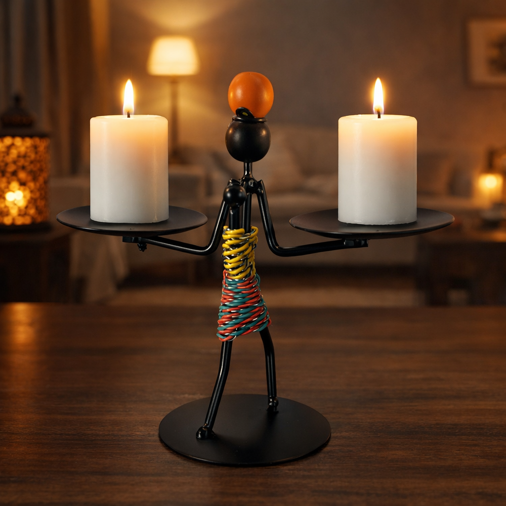 Iron Candle Holder | Stylish African Women Design | Home Decor Accessories (Multicolor, Pack of 1)