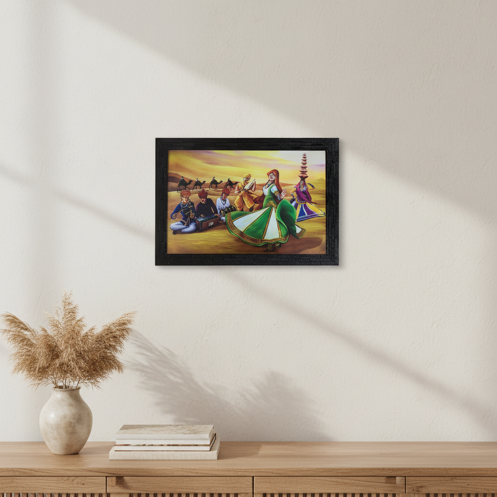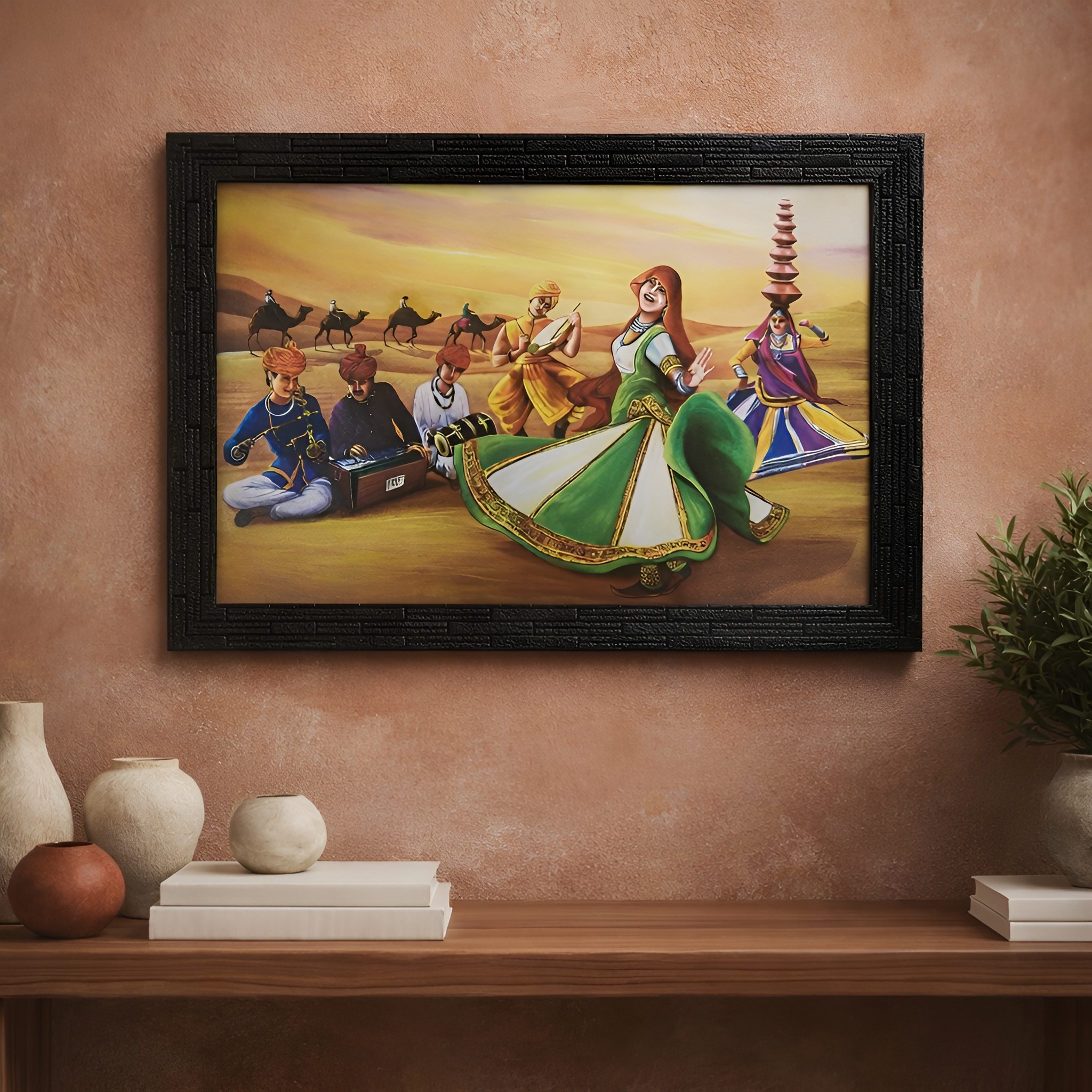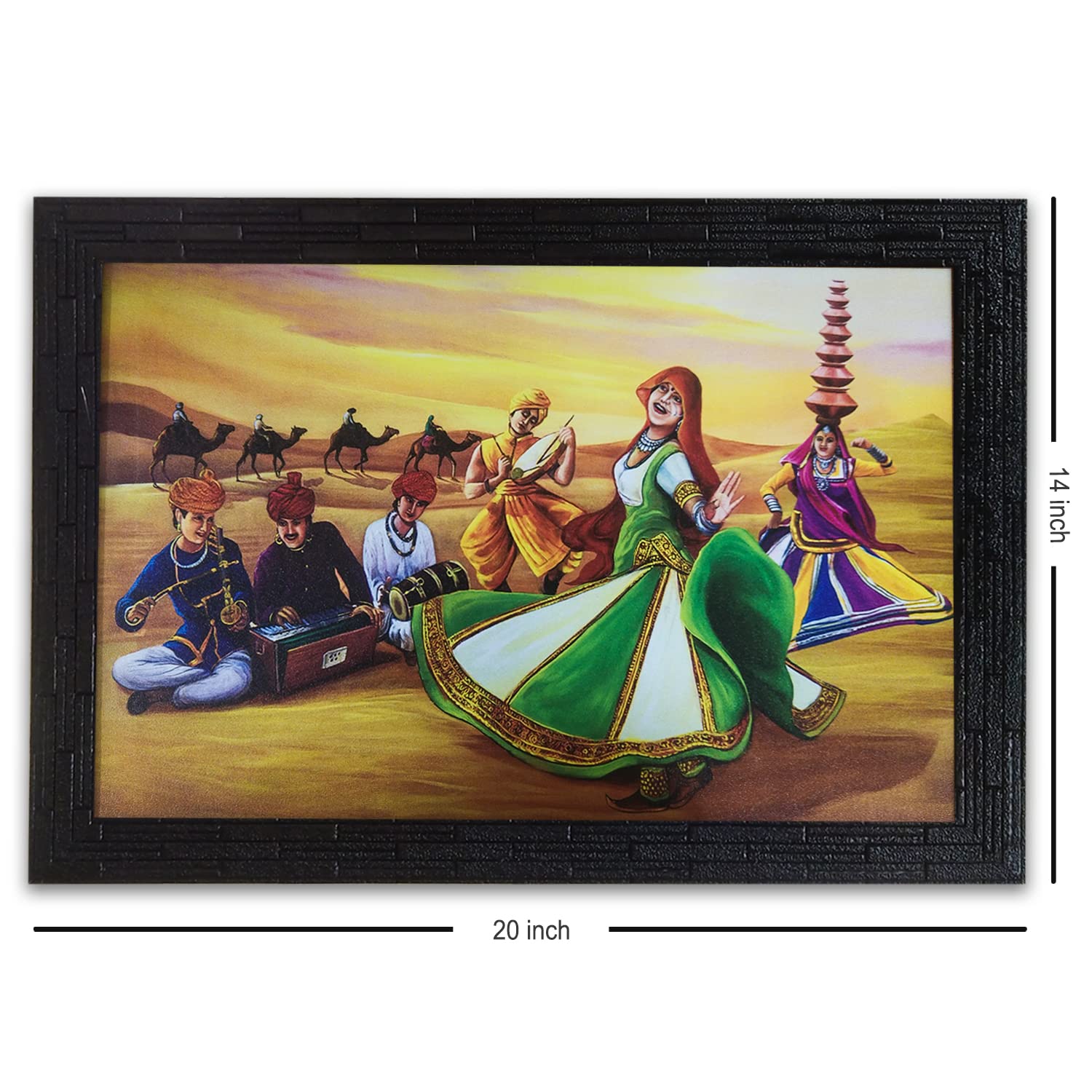LIFEHAXTORE Modern Rajasthani Folk Ghoomar Art Framed Painting | Ready to Hang (multicolor, 14 Inch x 20 Inch)