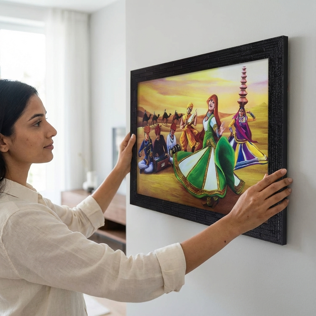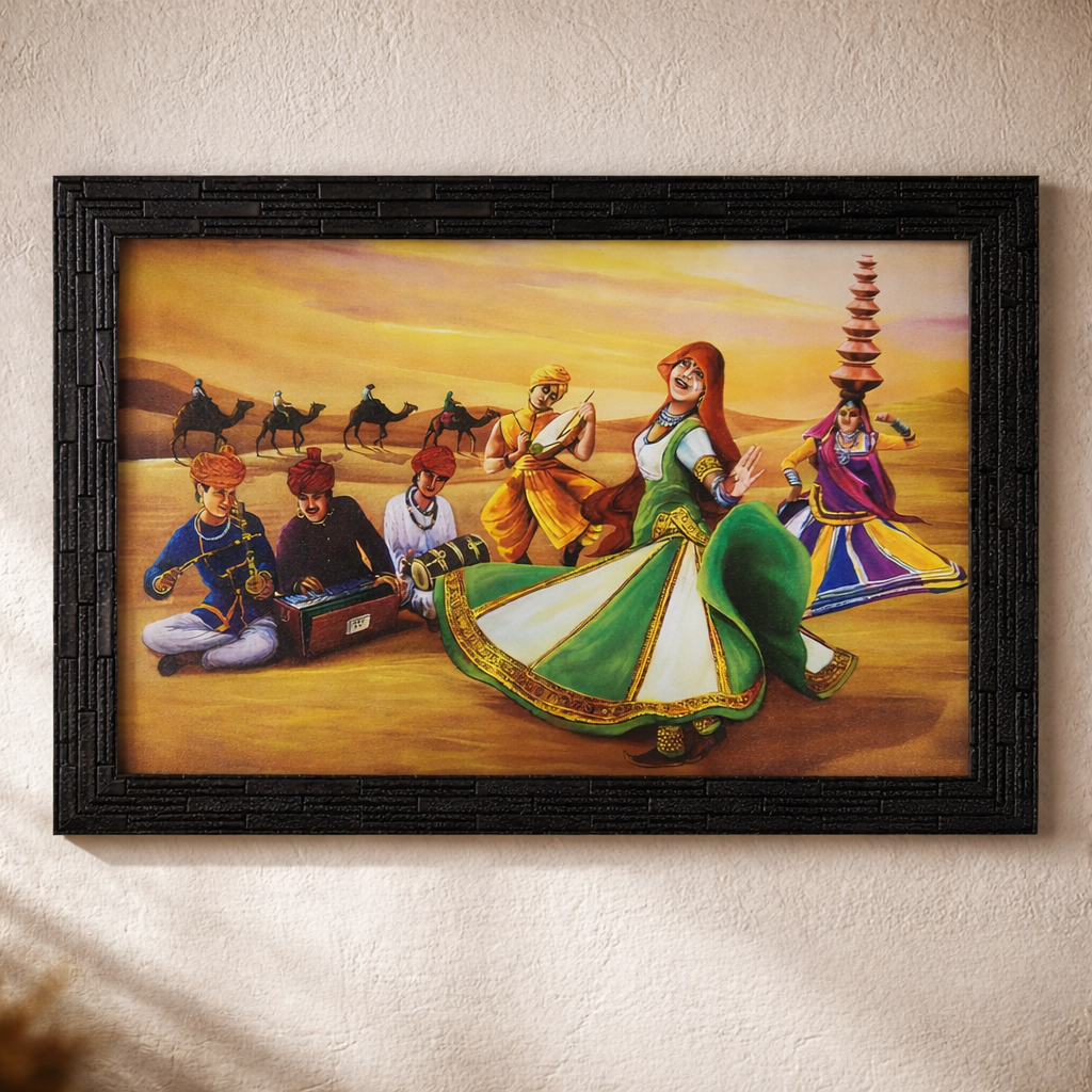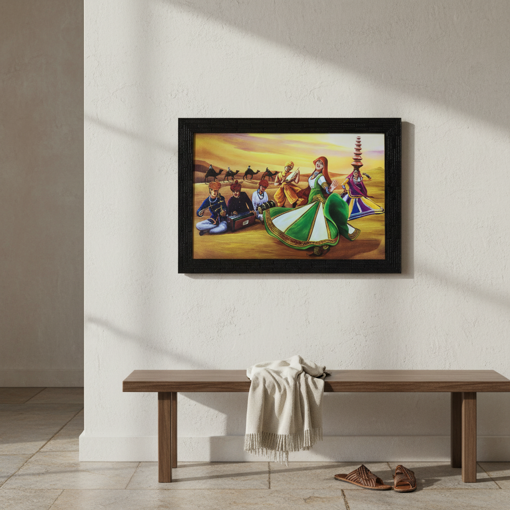 LIFEHAXTORE Modern Rajasthani Folk Ghoomar Art Framed Painting | Ready to Hang (multicolor, 14 Inch x 20 Inch)