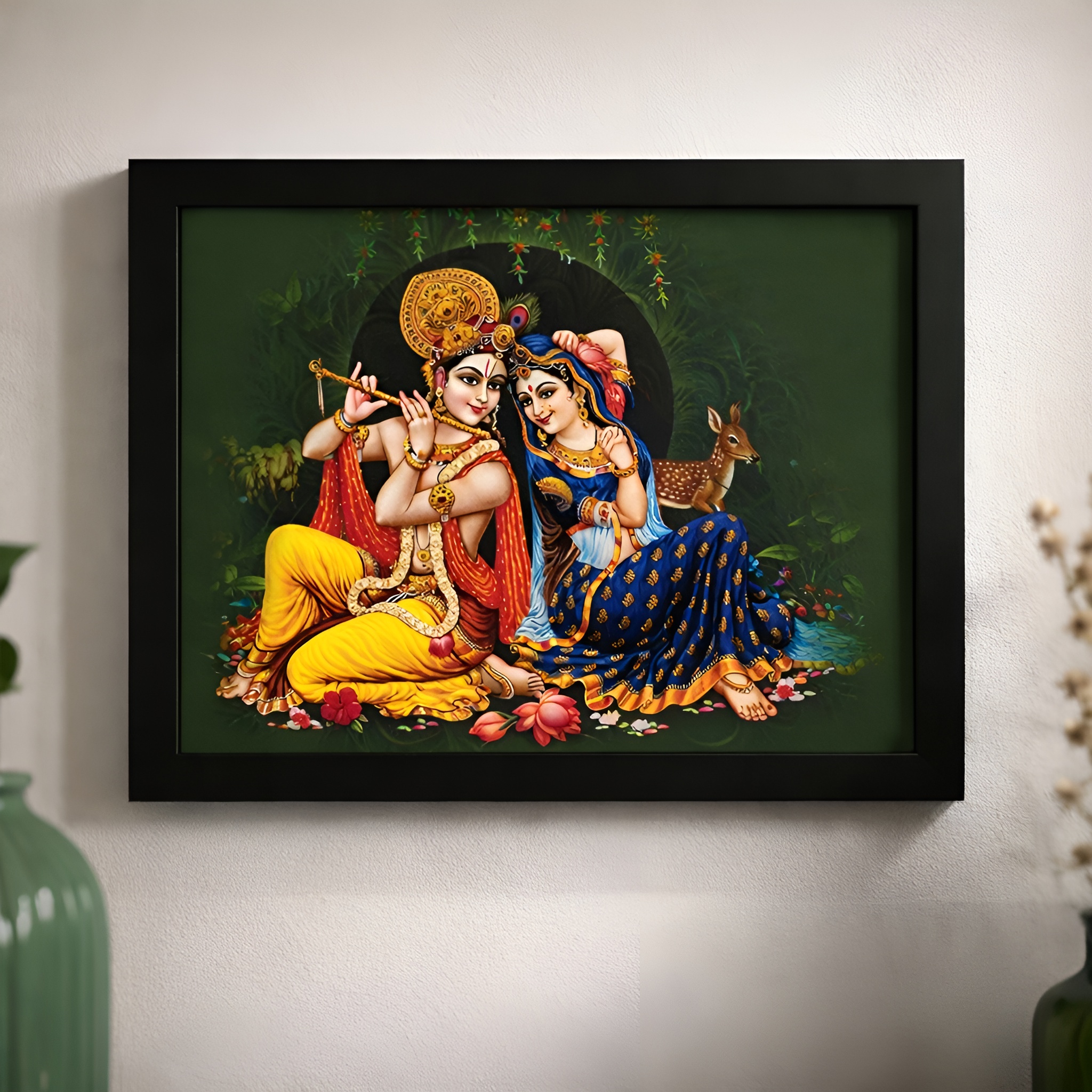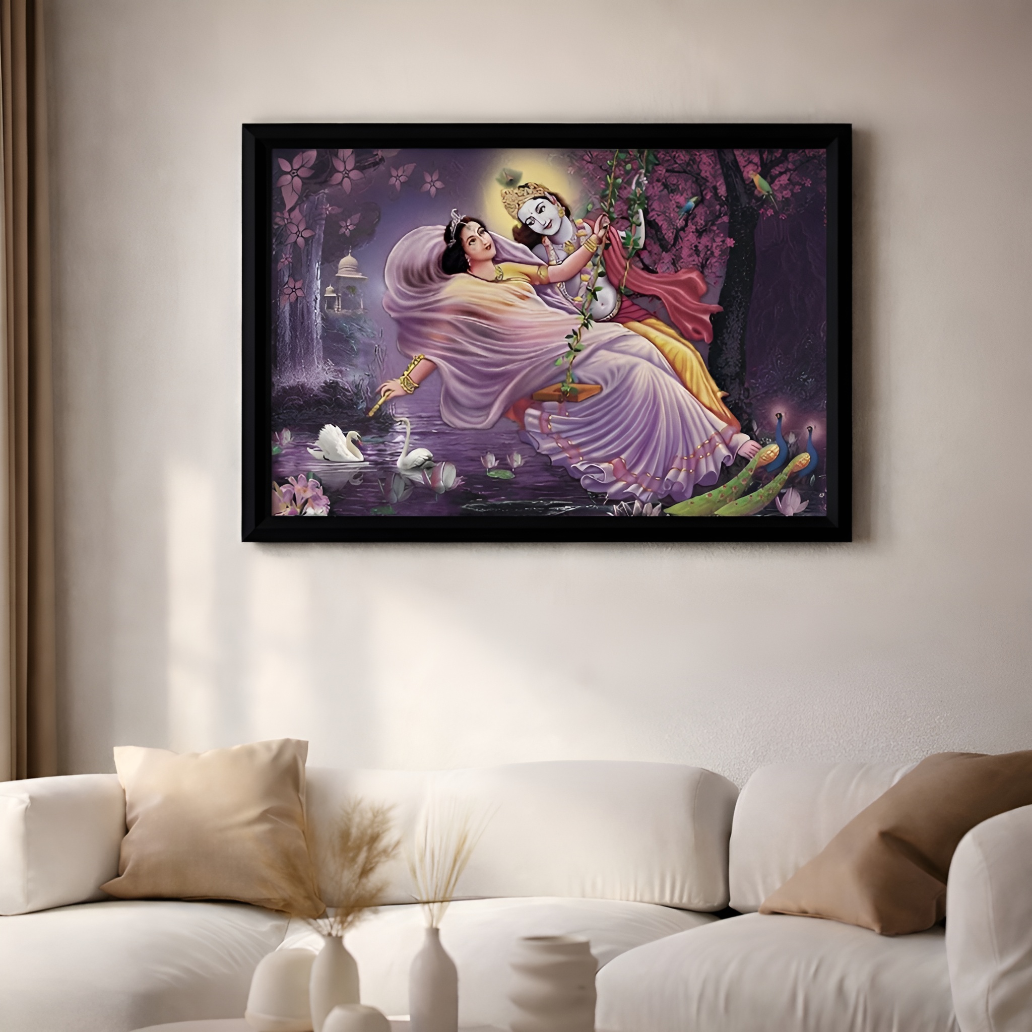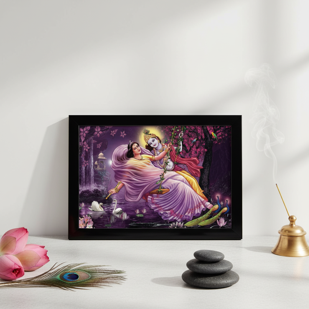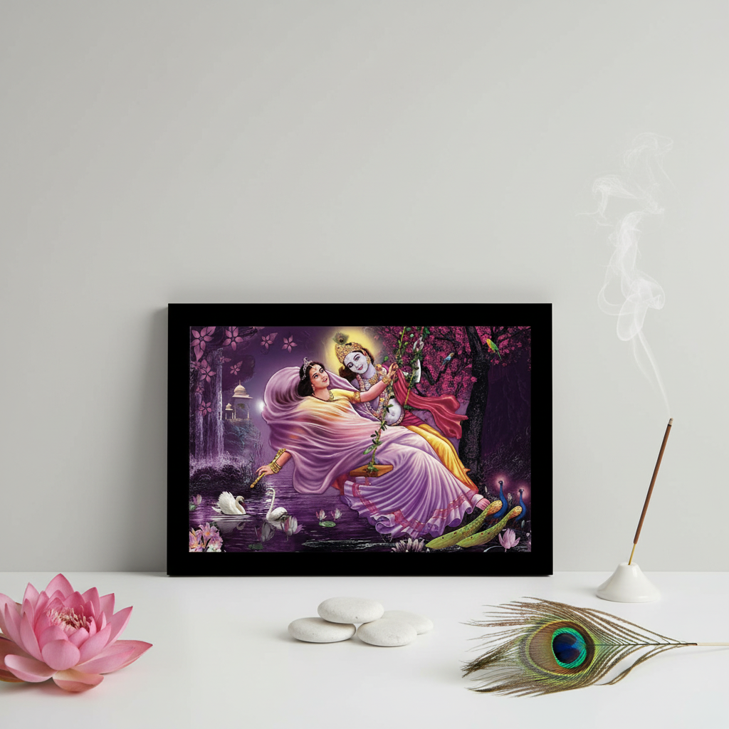 LIFEHAXTORE® Xtore Beautiful Swinging Radha Krishna Art Framed Painting | Ready to Hang (Wood, 12inch x 18 inch)