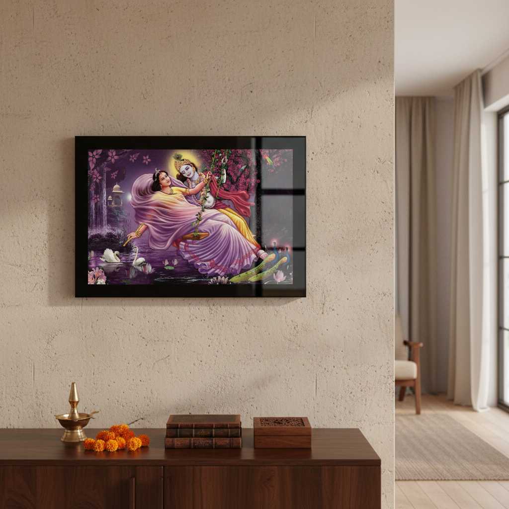 30 reviews for LIFEHAXTORE® Xtore Beautiful Swinging Radha Krishna Art Framed Painting | Ready to Hang (Wood, 12inch x 18 inch)