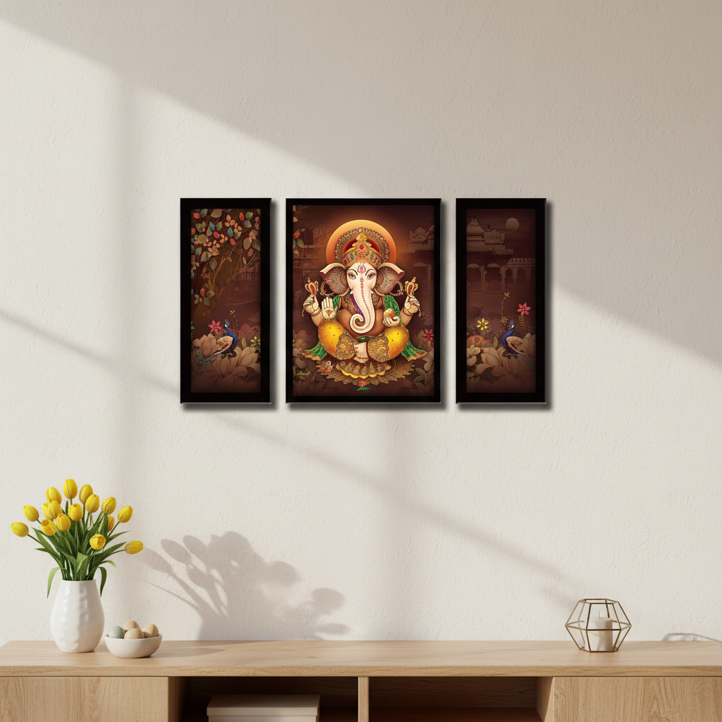 LIFEHAXTORE® Xtore Ganesha Art Framed Painting |UV Textured | Ready to Hang (Wood, 24 inch x 18 inch)