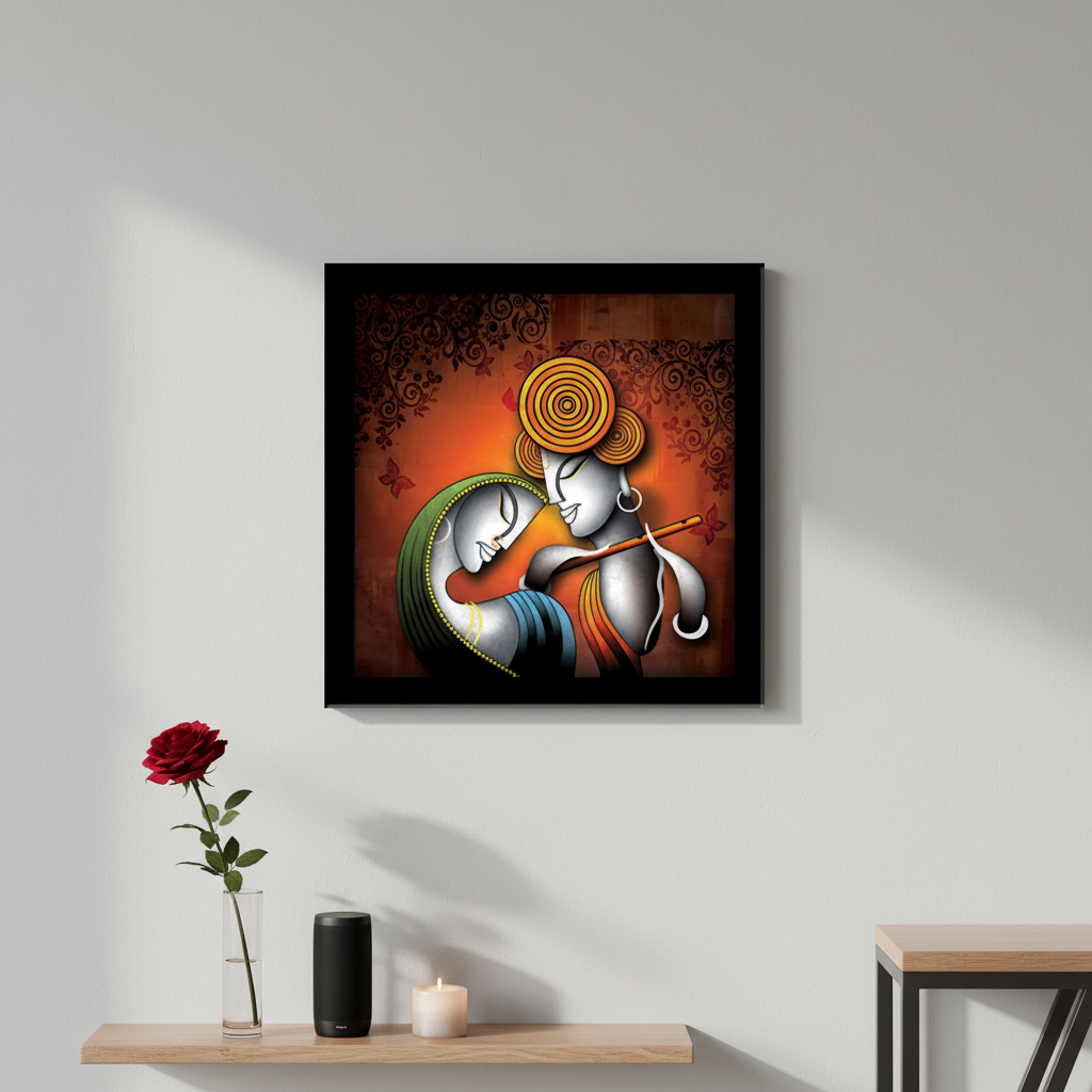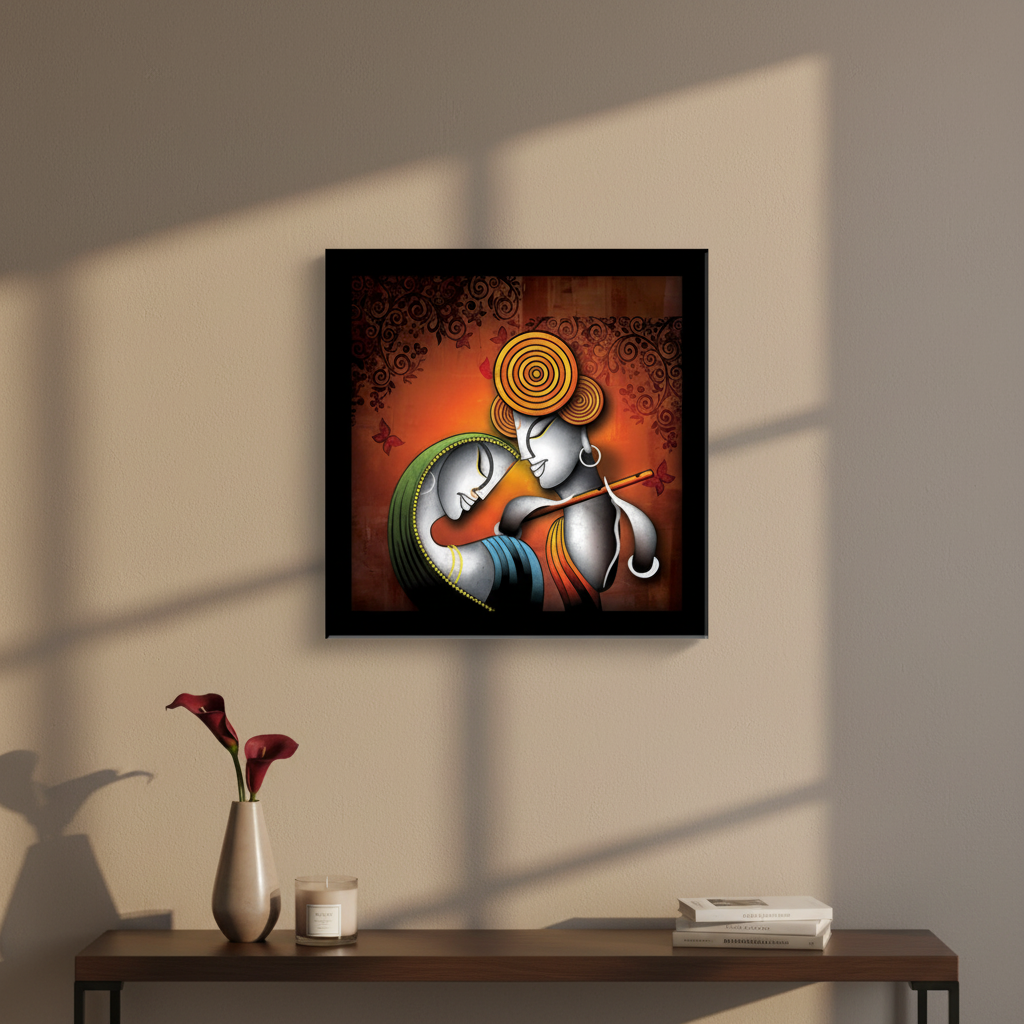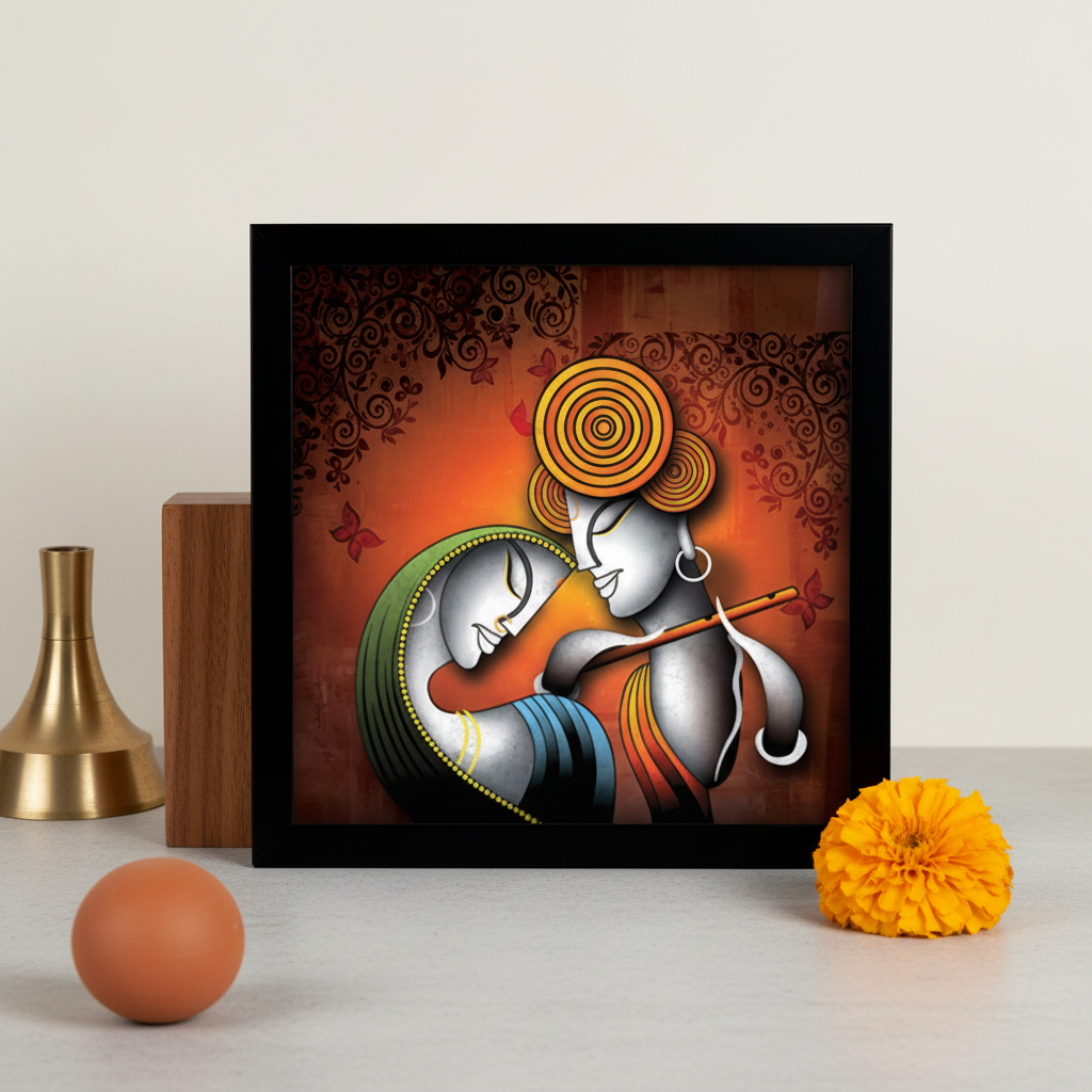 LIFEHAXTORE® Xtore Krishna Radha Art Framed Painting | Ready to Hang (Wood, 12inch x 12 inch)