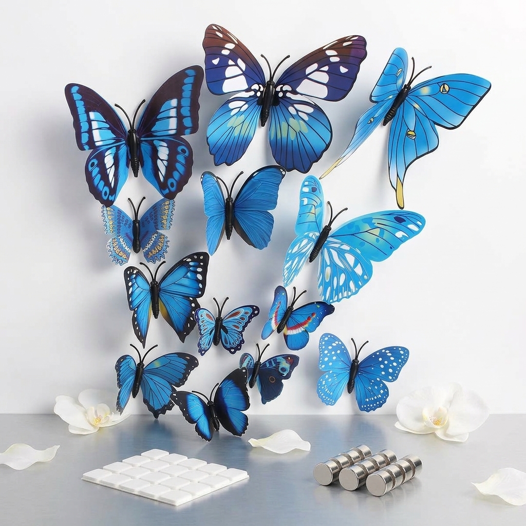 30 reviews for 12pcs 3D Home Decor Butterfly | 3D Plastic Build Beautiful Decor Item | Comes with Sticking pad Product (Set of 12) (Ocean Blue)