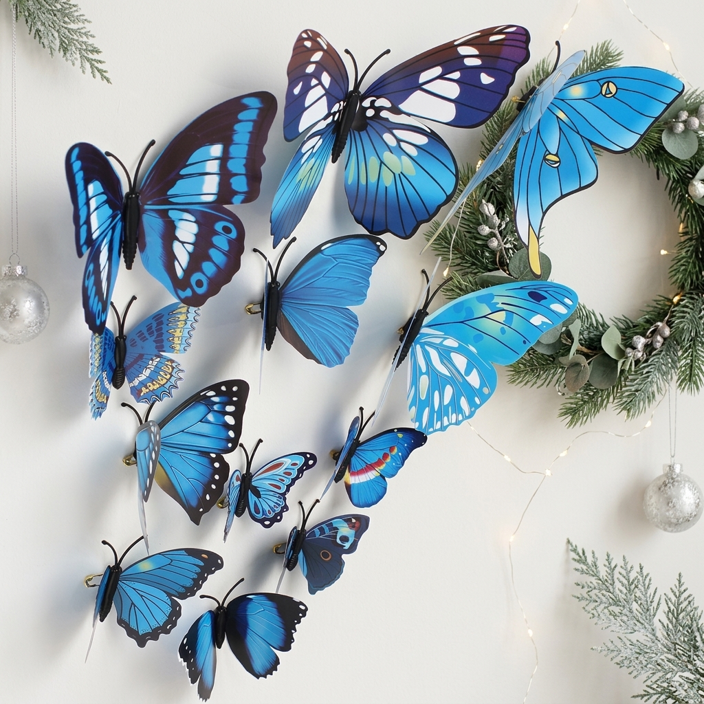 12pcs 3D Home Decor Butterfly | 3D Plastic Build Beautiful Decor Item | Comes with Sticking pad Product (Set of 12) (Ocean Blue)