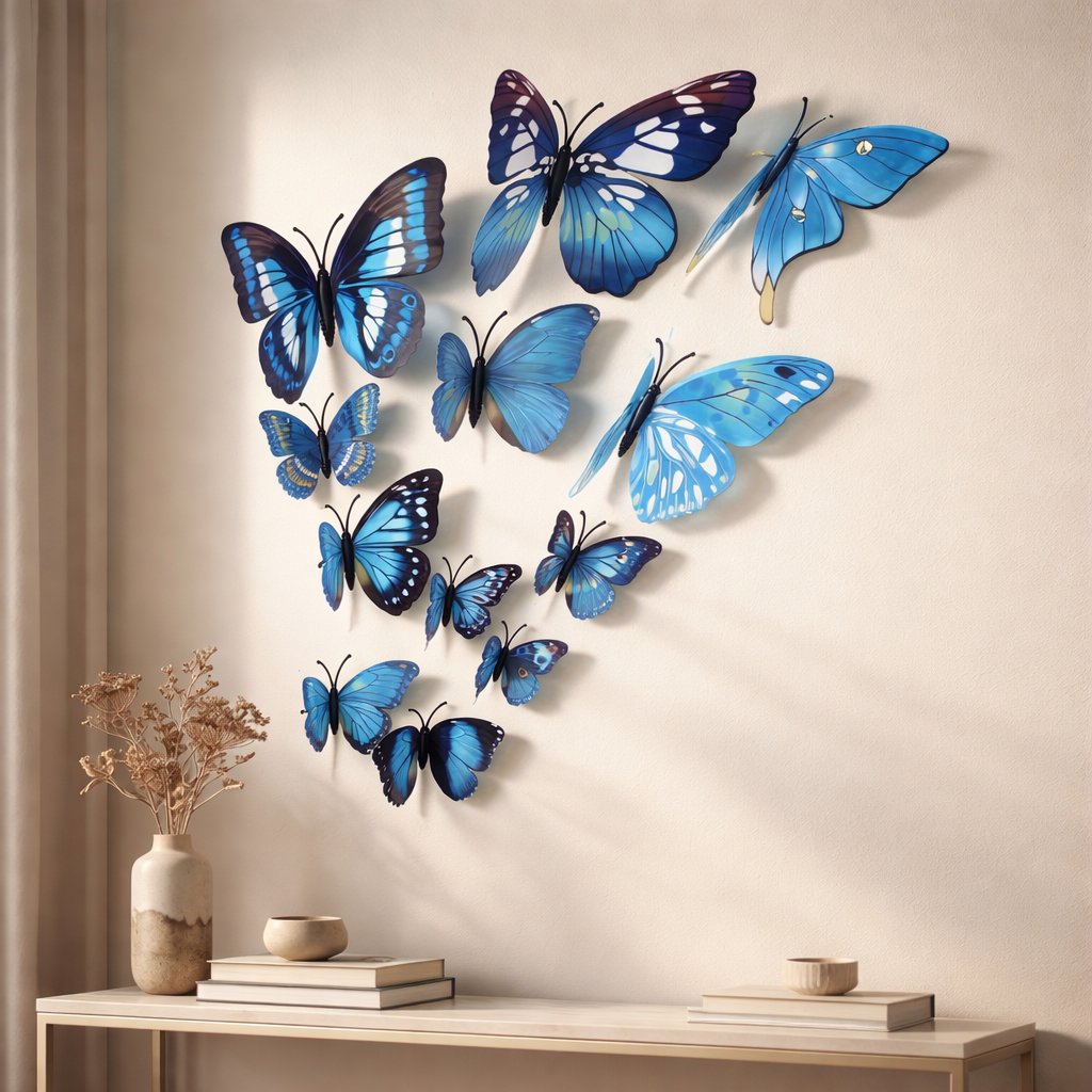 Xtore 12pcs 3D Home Decor Butterfly | 3D Premium Plastic Build Beautiful Decor Item | Comes with Sticking pad Product (Set of 12) (Blue)