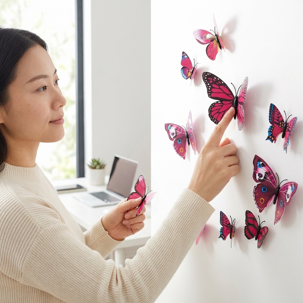 - Comes with Tack and got Double-sided adhesive in the body of the butterfly, can be applied on all smooth surfaces, such as walls, doors, closets, plastic, metal, fridges, laptops, TV, cars and so on