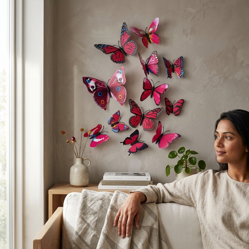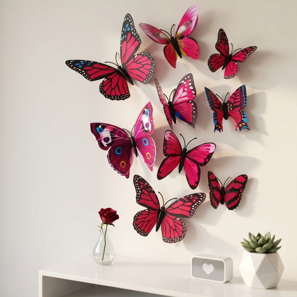 30 reviews for 12pcs 3D Home Decor Butterfly | 3D Premium Plastic Build Beautiful Decor Item | Comes with Sticking pad Product (Set of 12) (Magenta Pink)