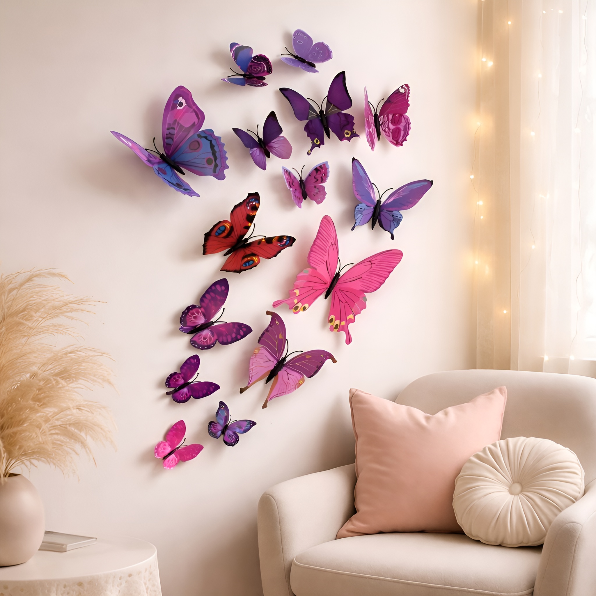 Xtore 12pcs 3D Home Decor Butterfly | 3D Premium Plastic Build Beautiful Decor Item | Comes with Sticking pad Product (Set of 12) (Shimmer Purple)