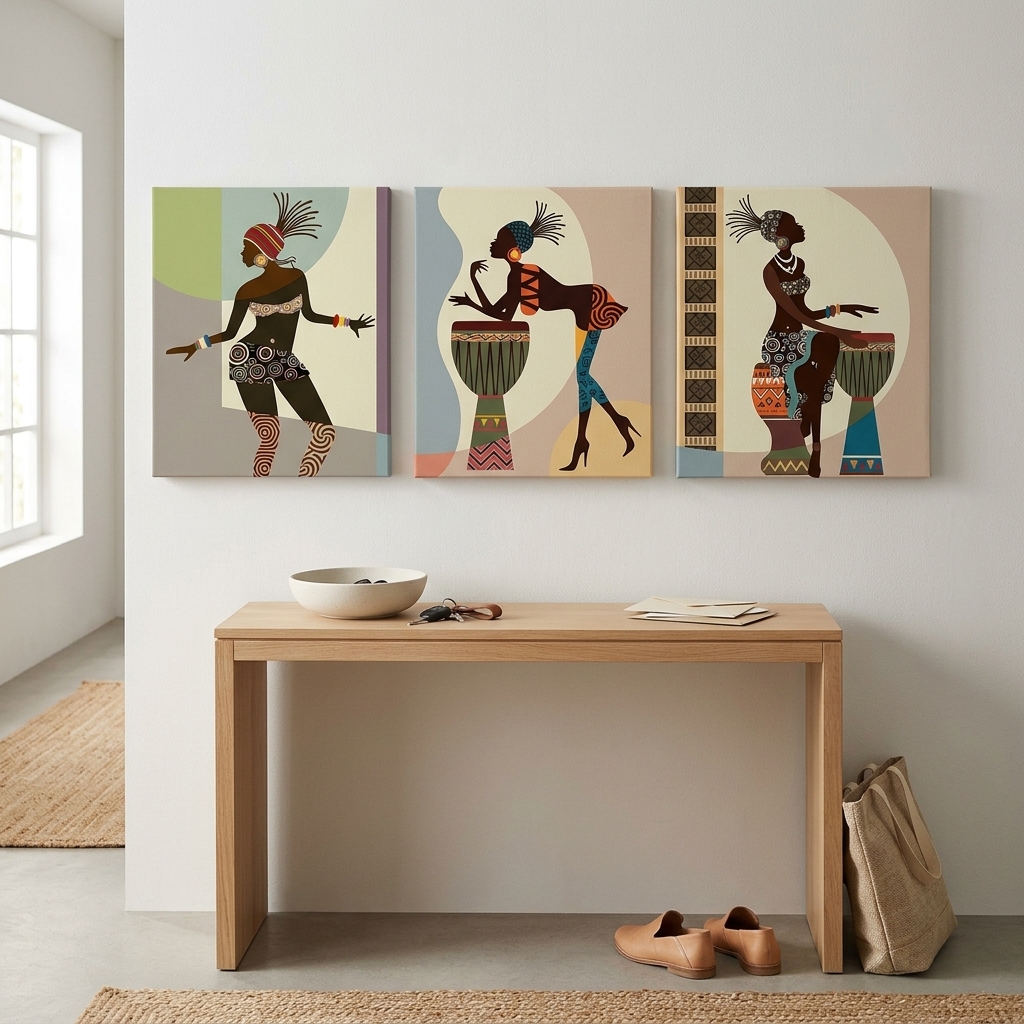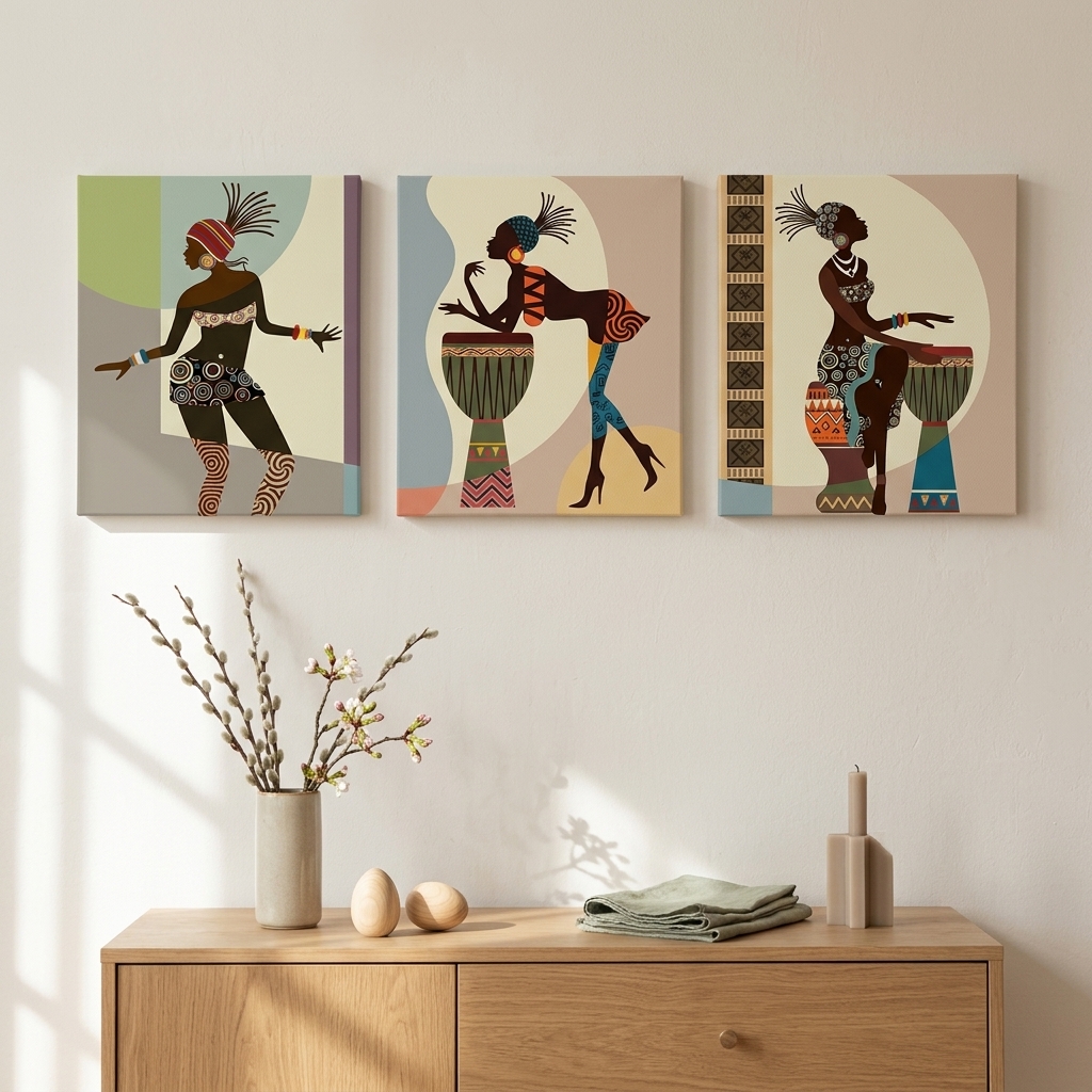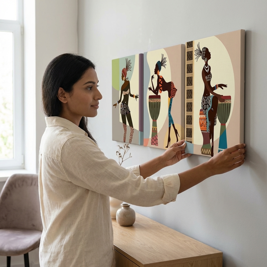 - 3 piece stretched and framed colorful canvas paintings wall art prints ready to hang for home decorations wall decor. Each panel has a black hook already mounted on the wooden bar for easy hanging out of box.