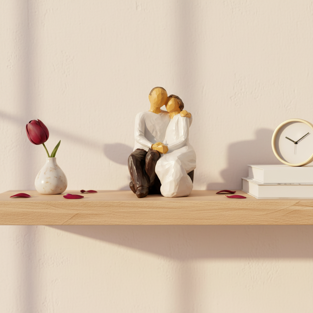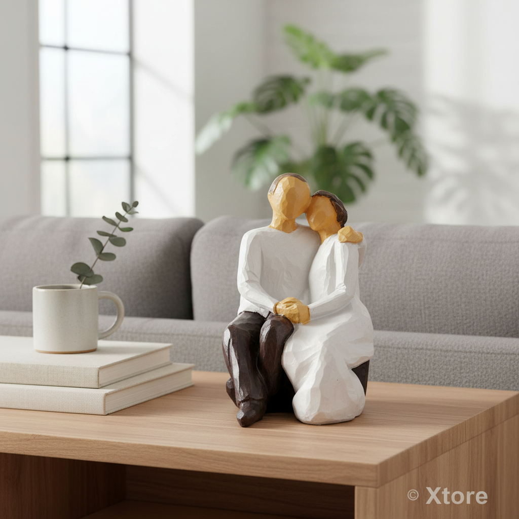 Xtore® Beautiful Hand Painted Medium Size Resin Sitting Romantic Couple (Pack of 1, Black & White)