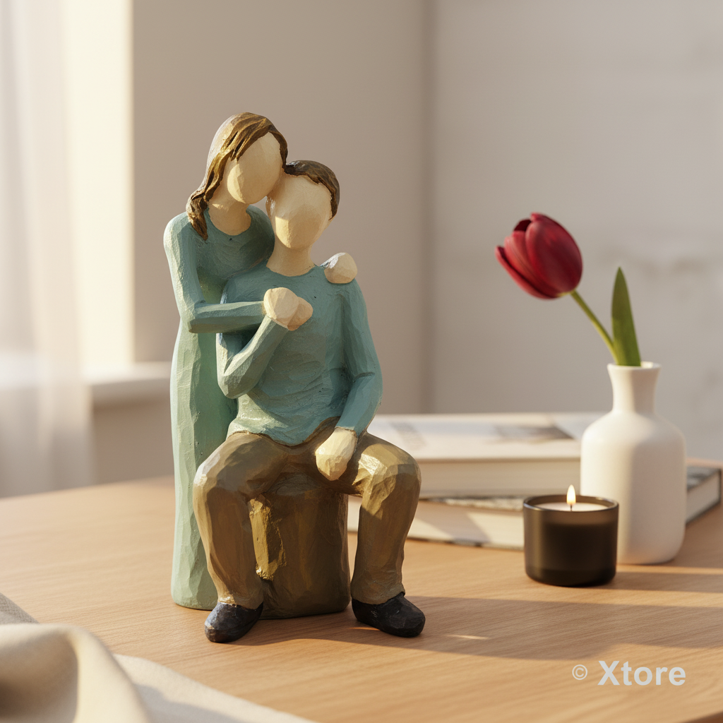 Xtore® Beautiful Hand Painted Medium Size Resin You & Me Romantic Couple Statue (Pack of 1, Multicolor)