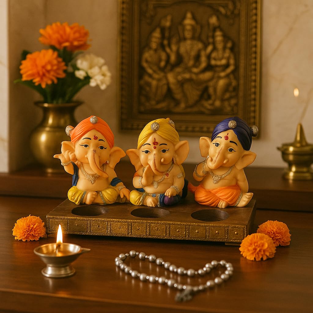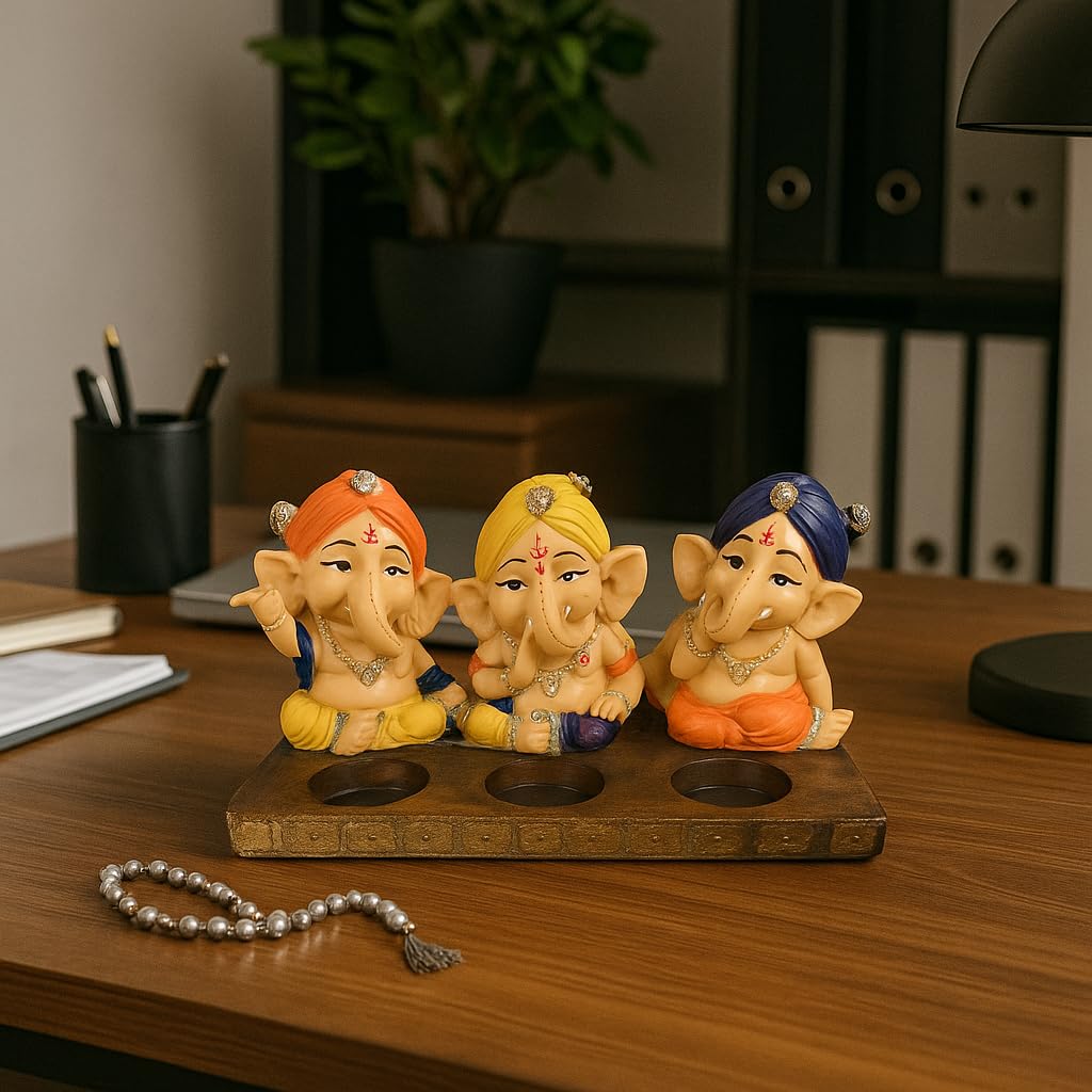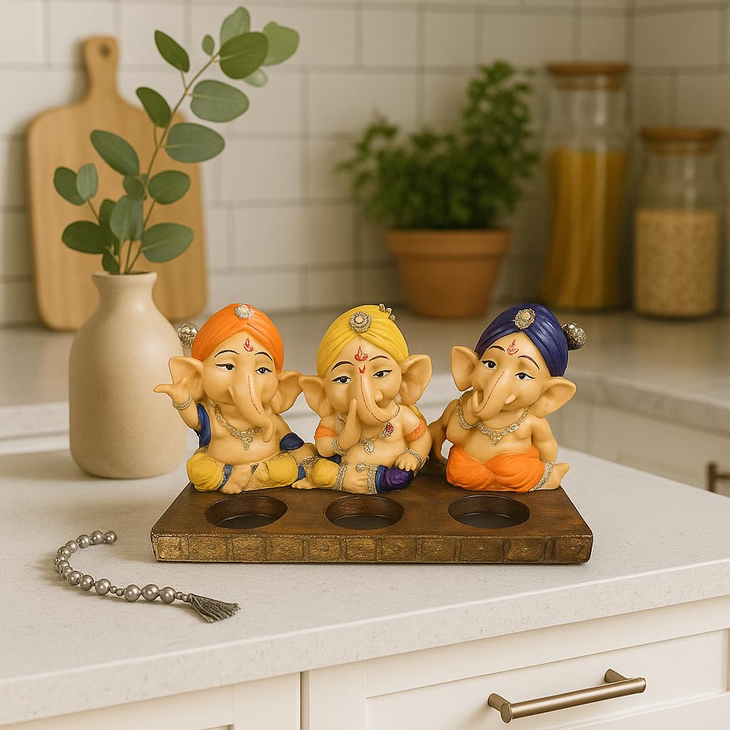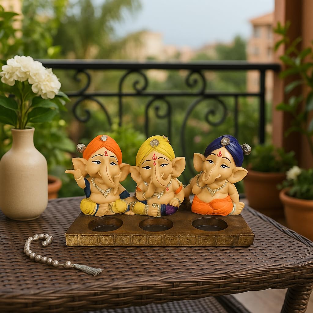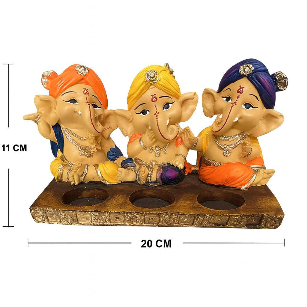 Xtore Beautiful Resin Three Ganesha Candle Holder for Home Decor (Pack of 1, Multicolor) Candles NOT Included