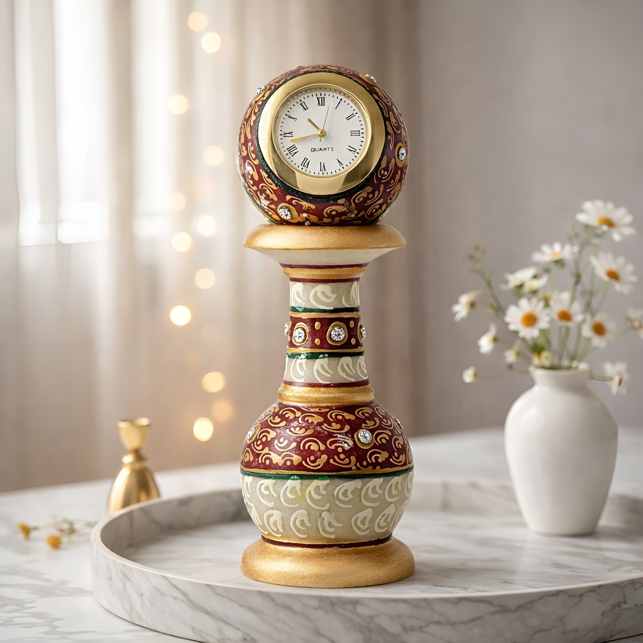 30 reviews for XTORE Ethnic Gold Finish Meenakari Work Marble Pillar Watch for Home Decor | Anniversary | Corporate Gifts – (Pack of 1, Watch + Pillar)
