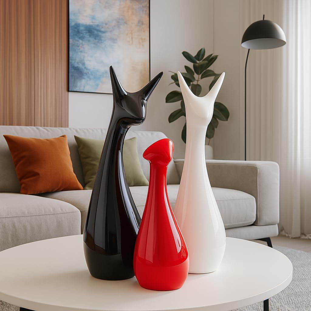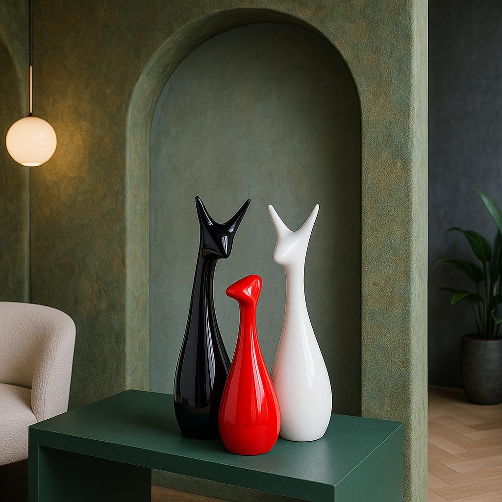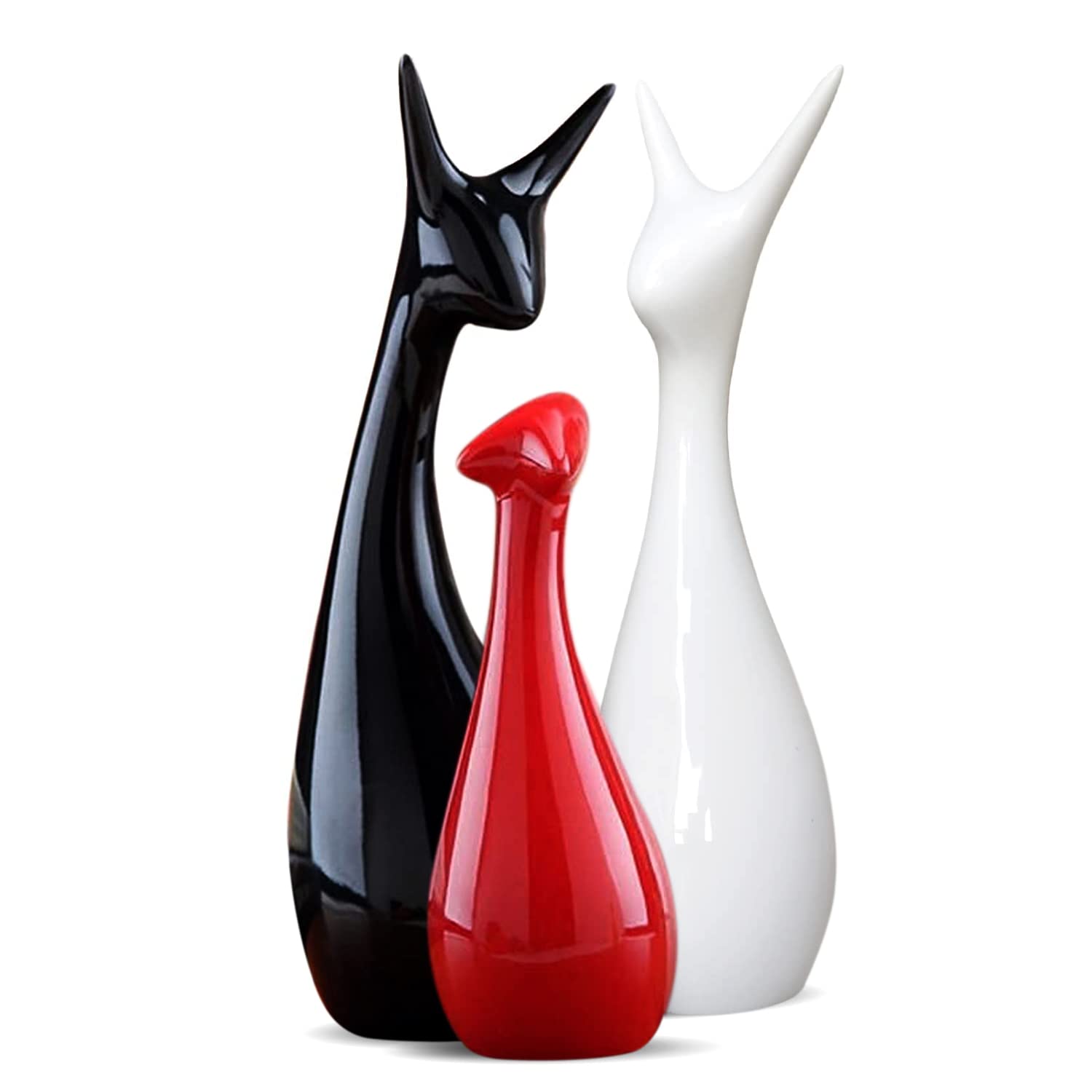 Xtore® Home Décor Lucky Deer Family Piano Finish Ceramic Figures – (Set of 3, Red Black, White)