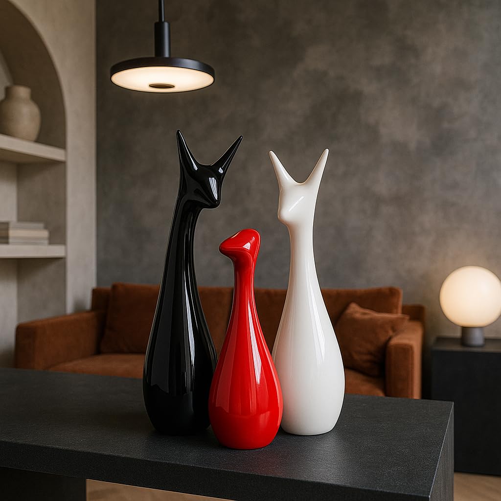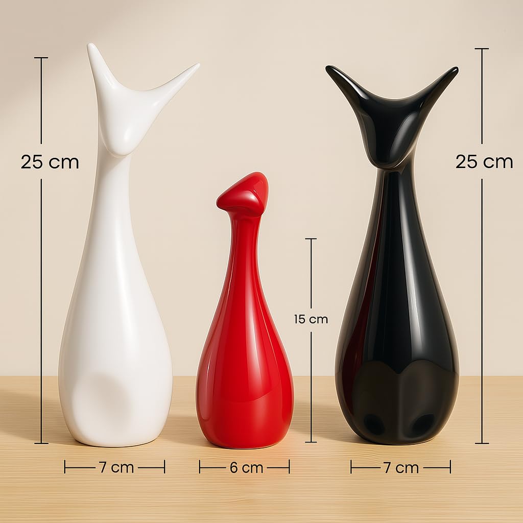 Xtore® Home Decor Lucky Deer Statue Family Piano Finish Ceramic Figures – (Set of 3, Red Black, White)