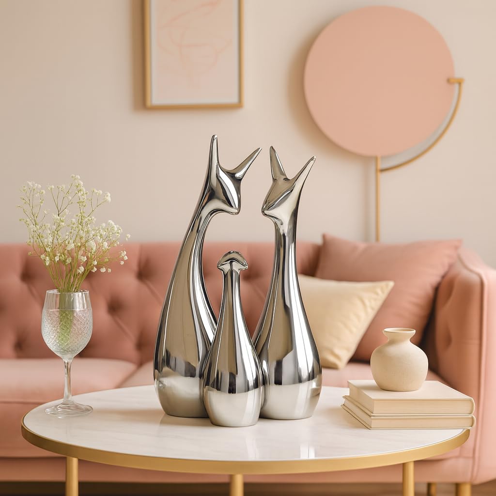 Xtore® Home Decor Lucky Silver Deer Statue Family Piano Finish Ceramic Figures – (Set of 3, Silver Set)