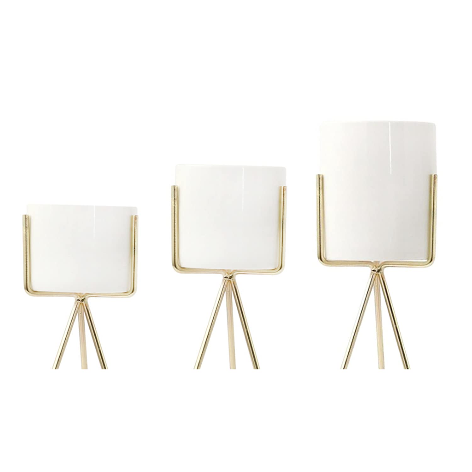 Xtore Indoor Floor Plant Stand Flower Golden Stand with White Pot Planter ( White Planter Pot Set of 3 )
