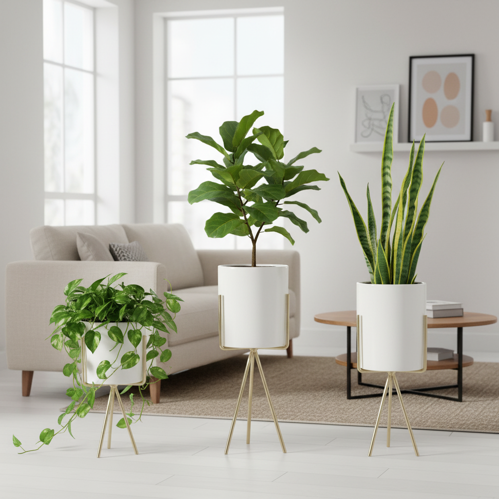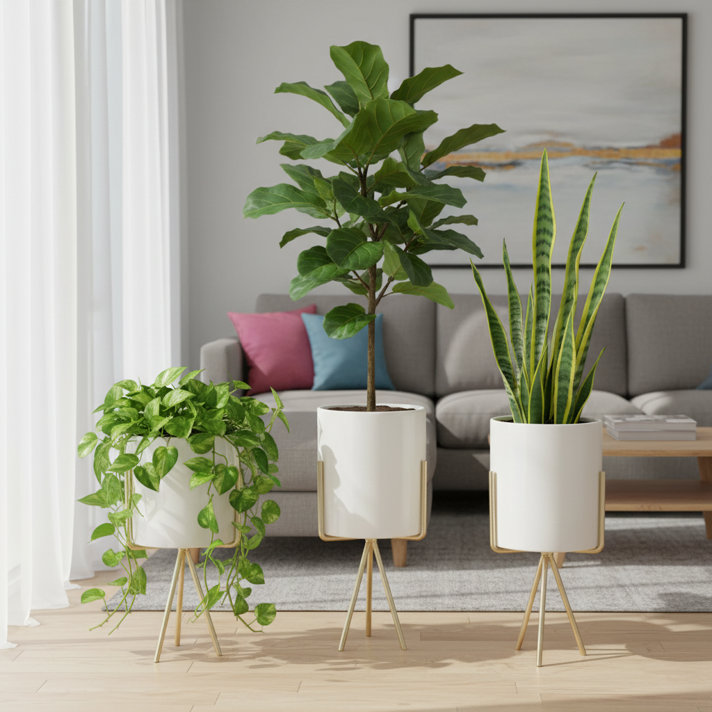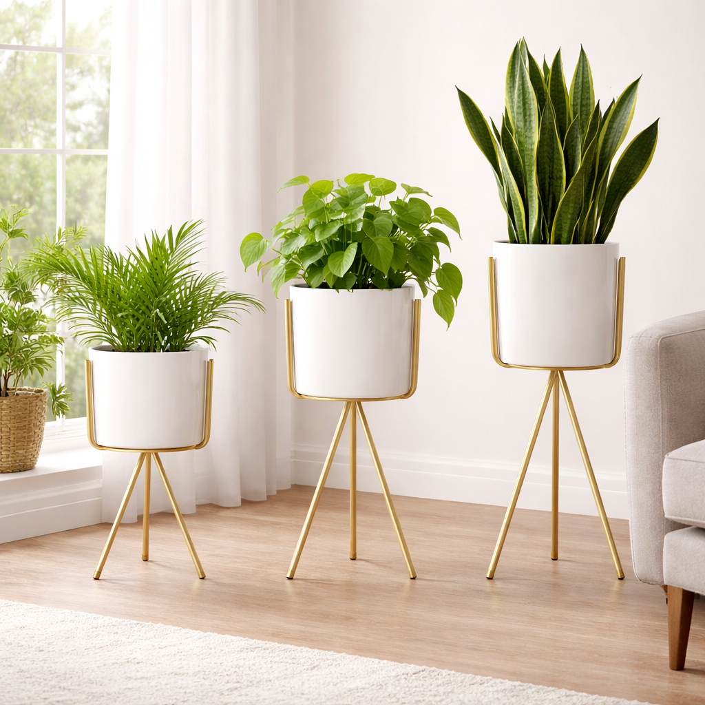 92 reviews for Xtore Indoor Floor Plant Stand Flower Golden Stand with White Pot Planter ( White Planter Pot Set of 3 )