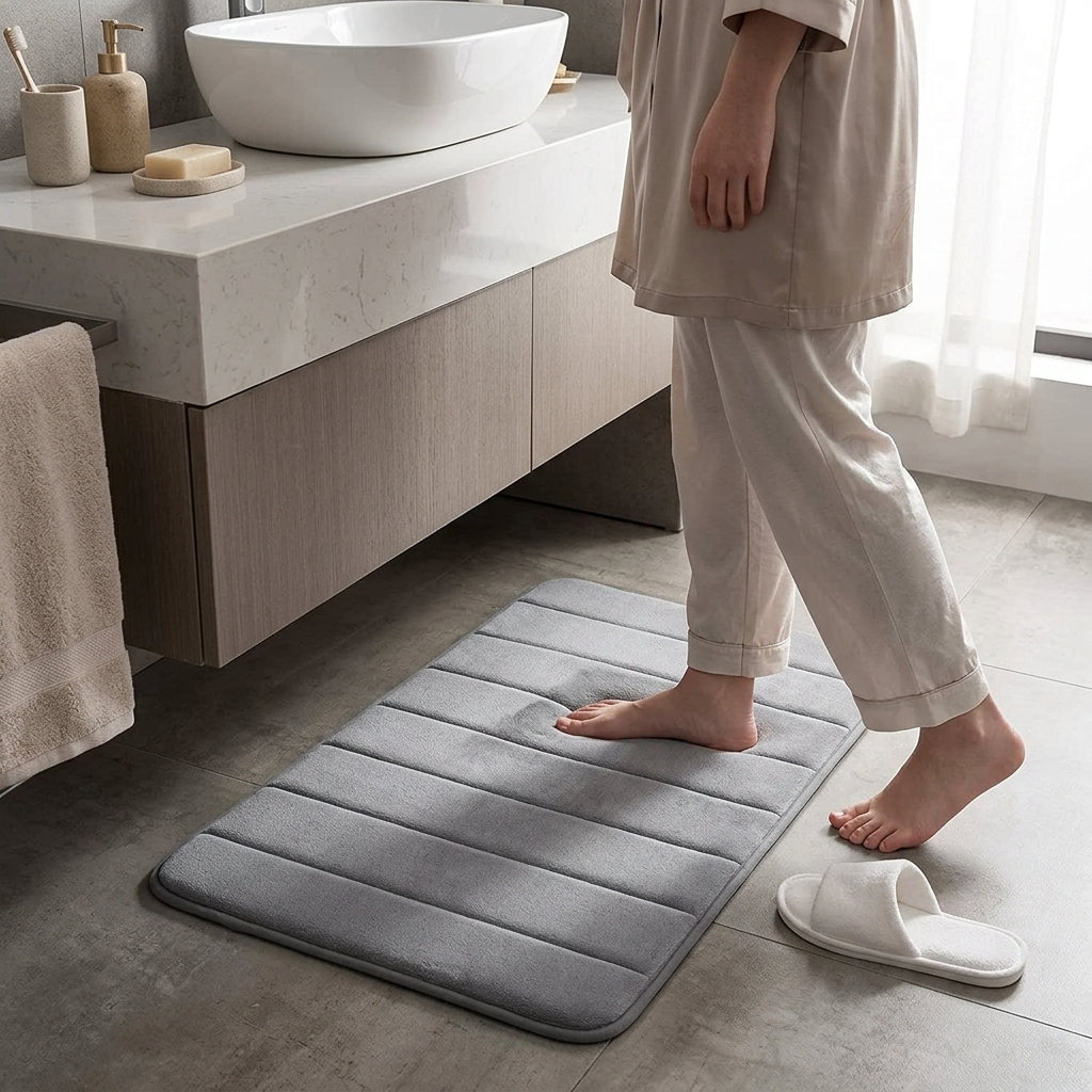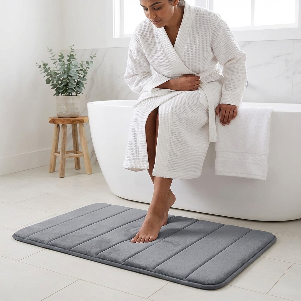 - 4. Thicker and better constructed memory foam bathroom mat, provides comfortable experience for your feet.