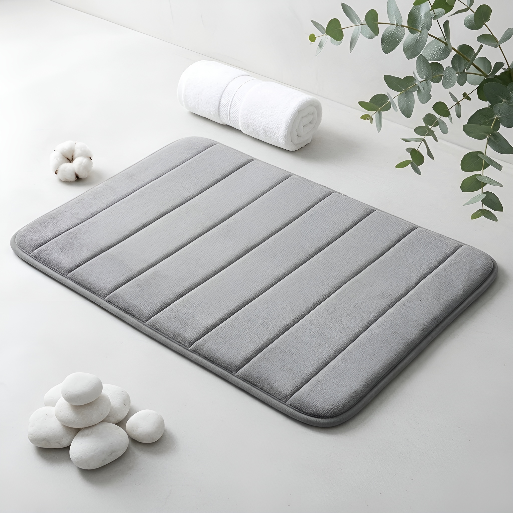 Xtore Memory Foam Bath Mat, Soft and Comfortable, Super Water Absorption, Non-Slip, Thick, Machine Wash, Easier to Dry for Bathroom Floor Rug ( Grey Striped Patten )