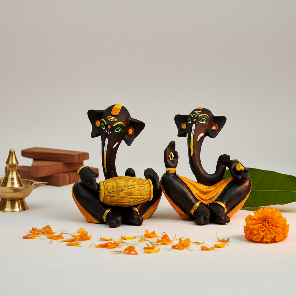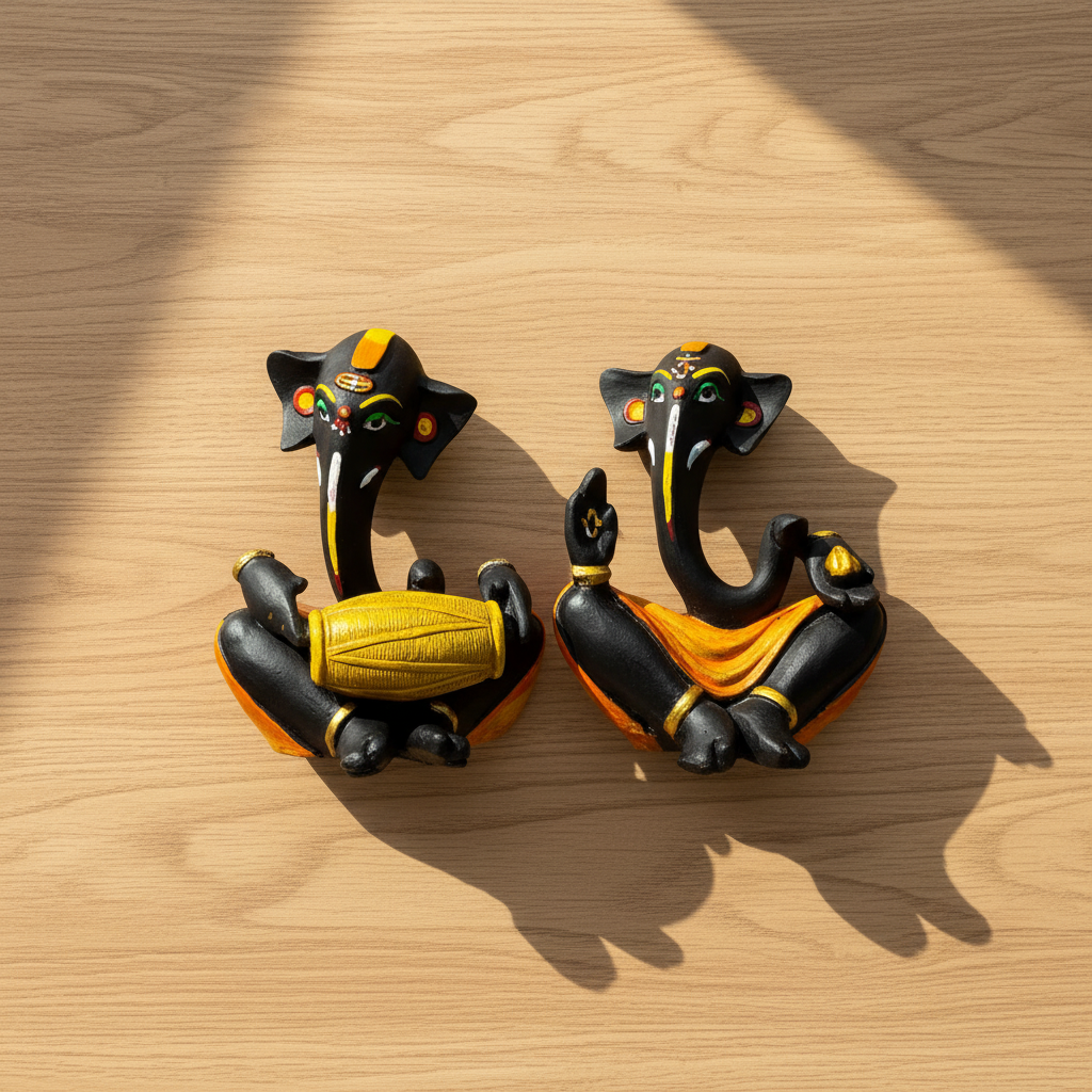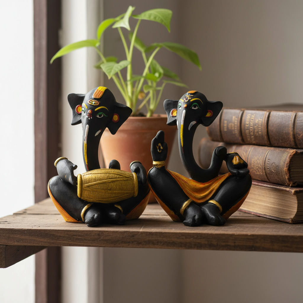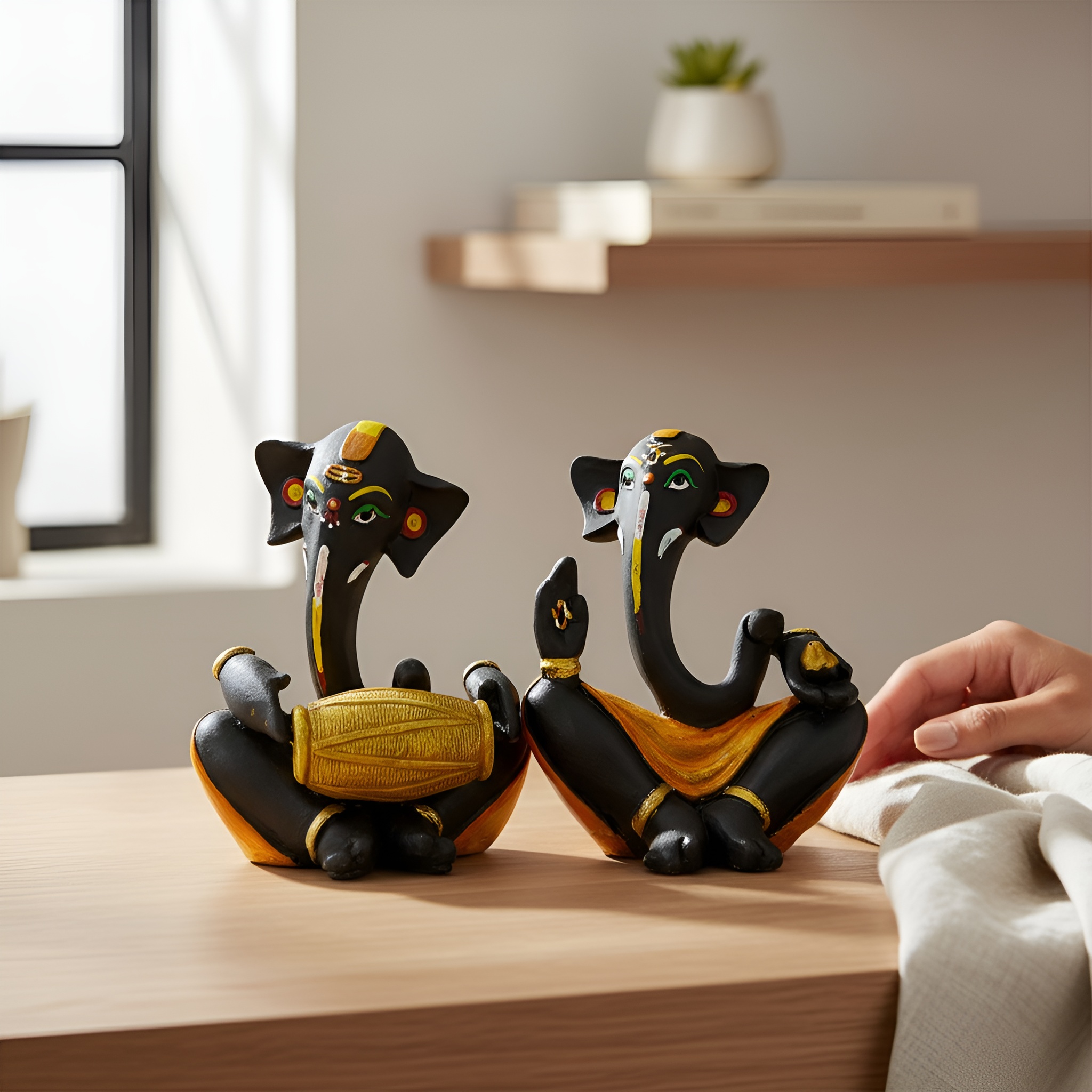 Xtore Resin Hawa Ganesha Statues Decorative Showpiece (Pack of 2, Black & Yellow)