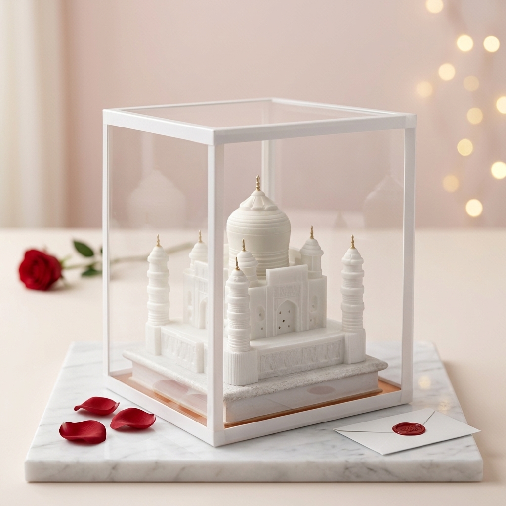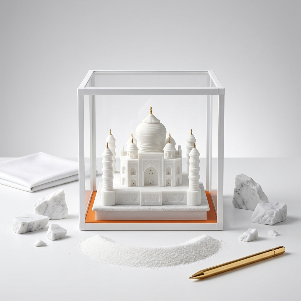 Handcrafted Taj Mahal from World famous Makrana Marble. Designed with love and passion of local artisans of Rajasthan