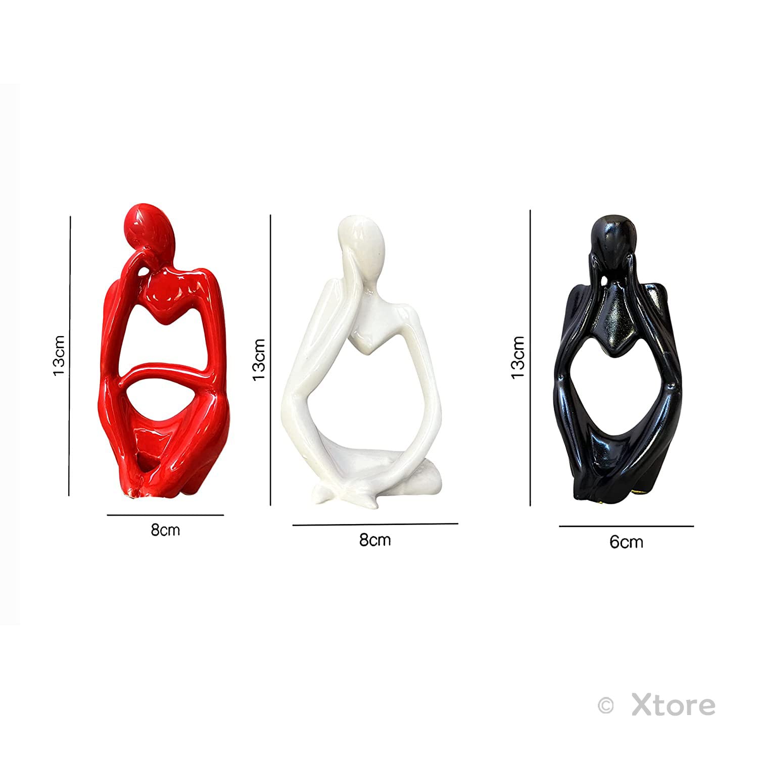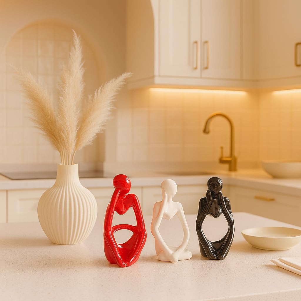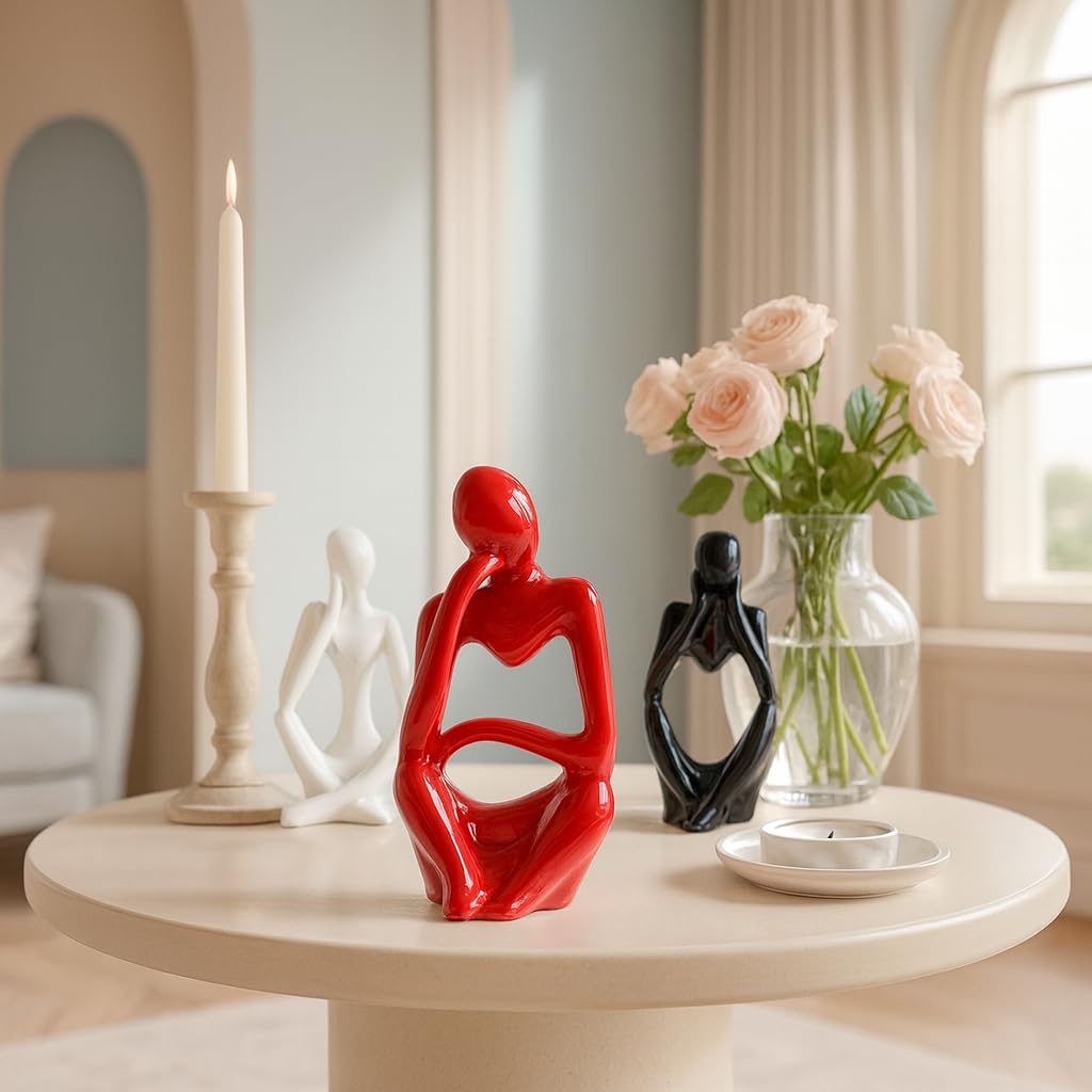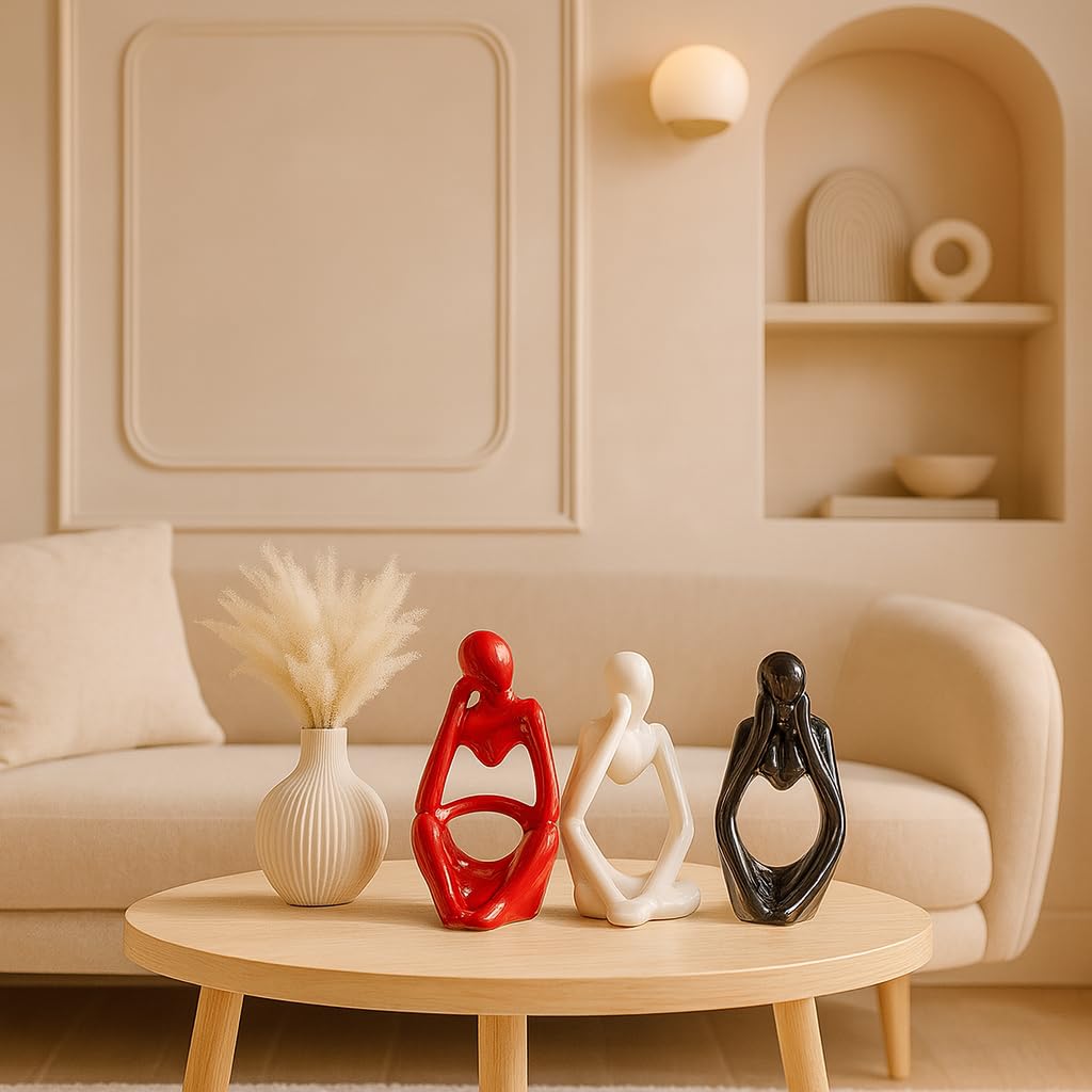 Xtore Thinker Decoreative Statues for Home Decor (Pack of 3, Black, Red & White)