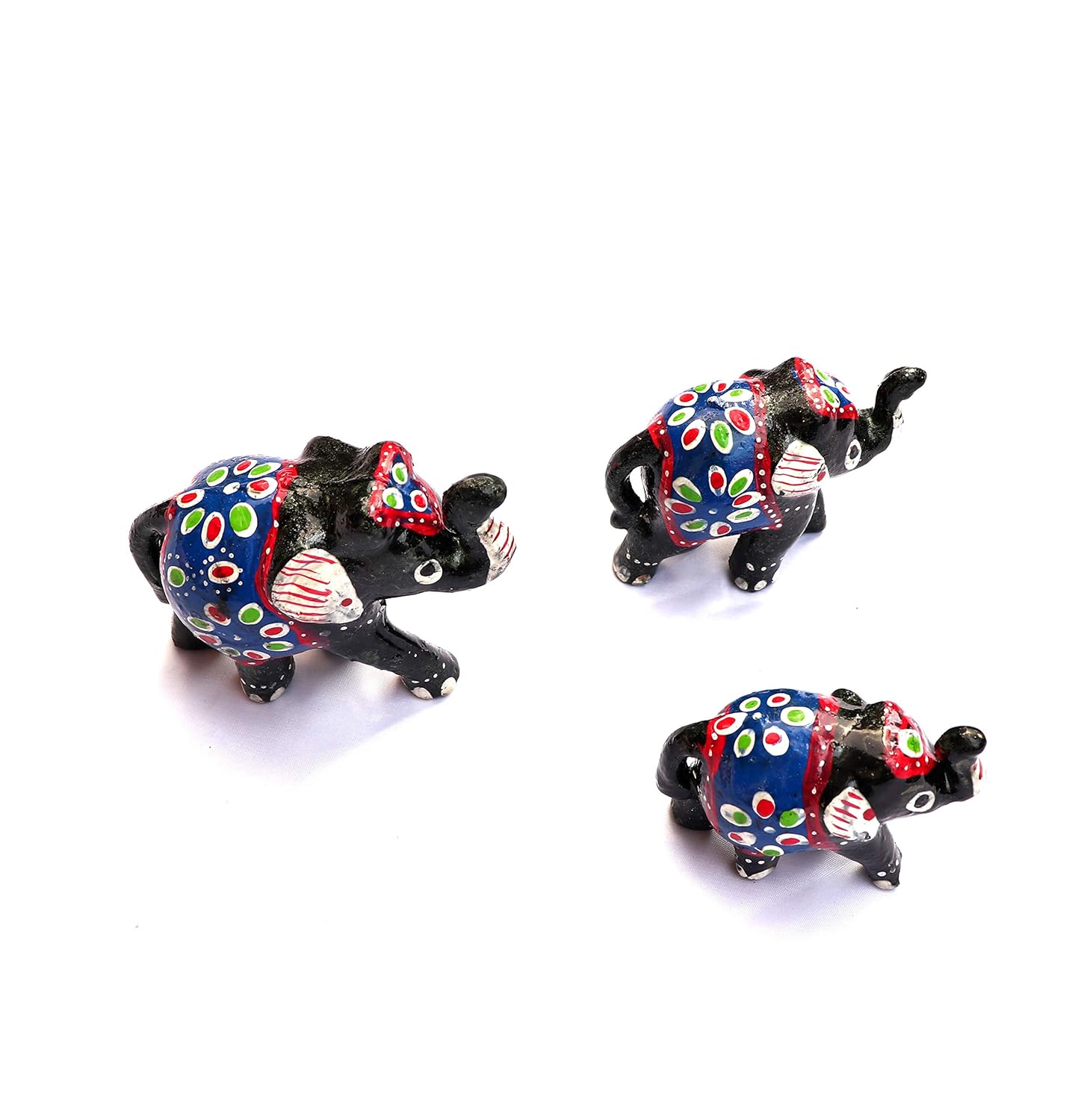 Xtore True Art Indian Traditional Handicraft | Lucky Nose Lifted Elephant | Purely Hand Made | Hand Painted by Proud Indian Artisans (Set of 3, Black)