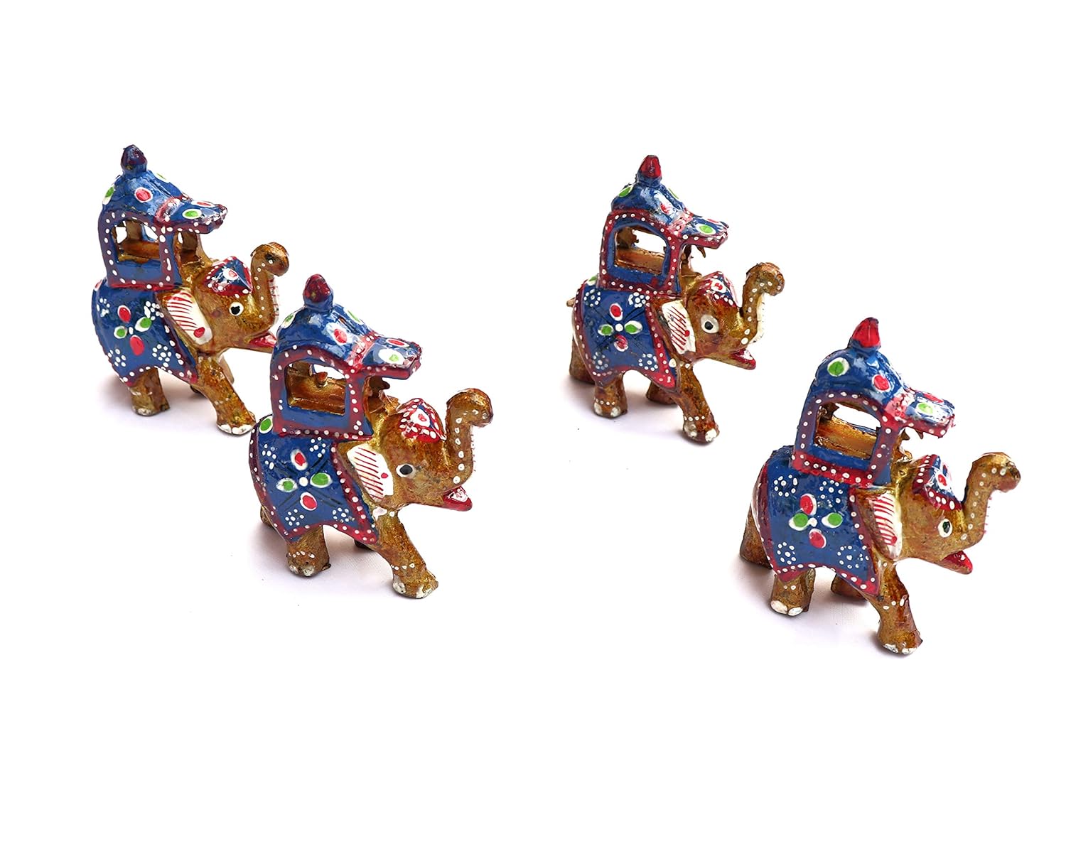 Xtore True Art Indian Traditional Handicraft | Lucky Nose Lifted Elephant | Purely Hand Made | Hand Painted by Proud Indian Artisans (Set of 4, Brown)